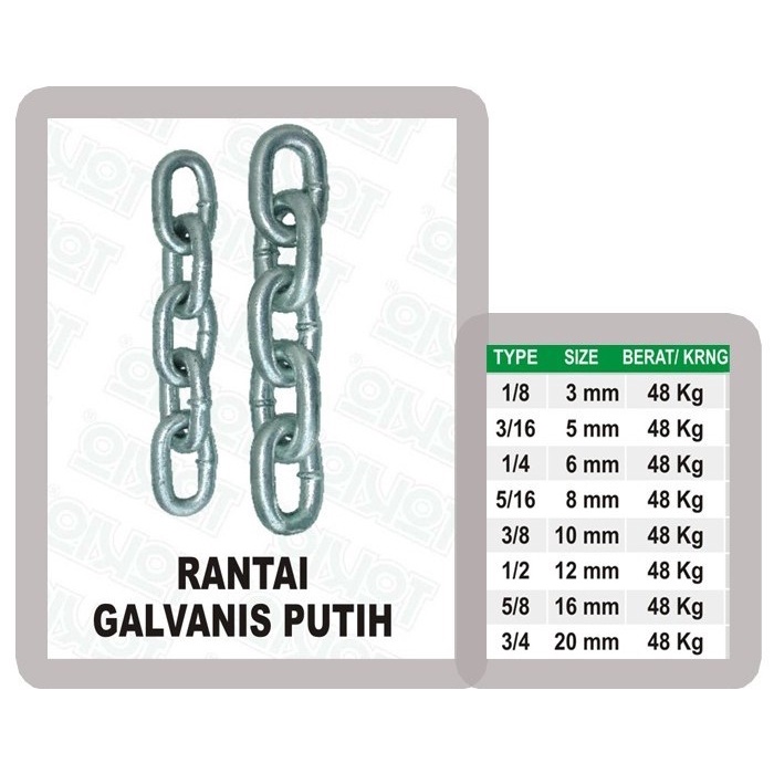 Rantai Kapal Rantai Besi / Rantai Putih Berkualitas Awet 8 mm (5/16") & 10 mm ( 3/8 inch ) panjang 1 meter