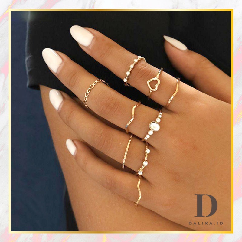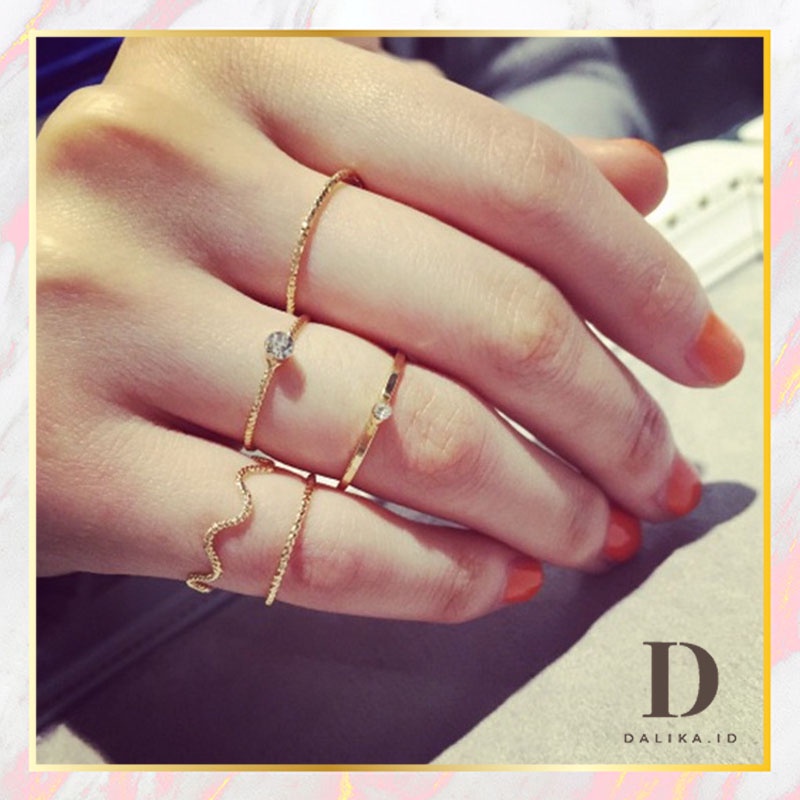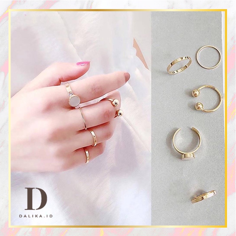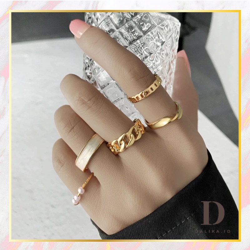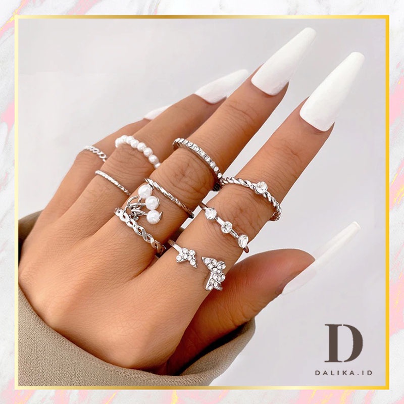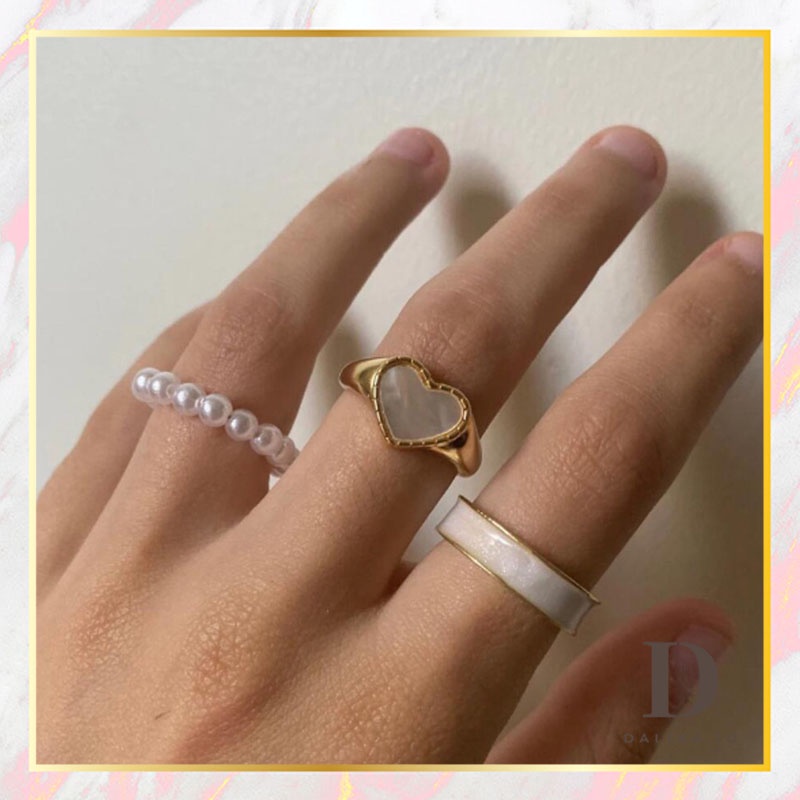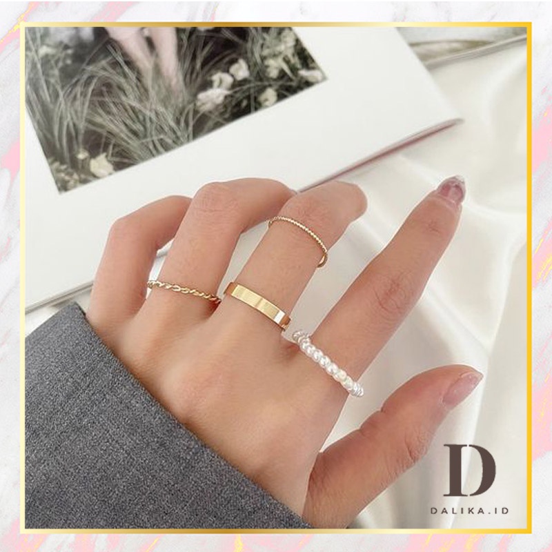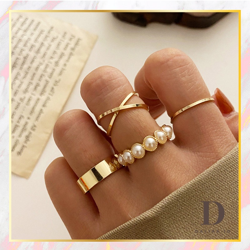 Cincin Set Fashion Korean Mutiara Diamond Gold Silver Aksesoris Wanita Dalika