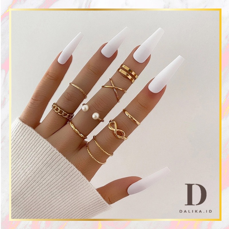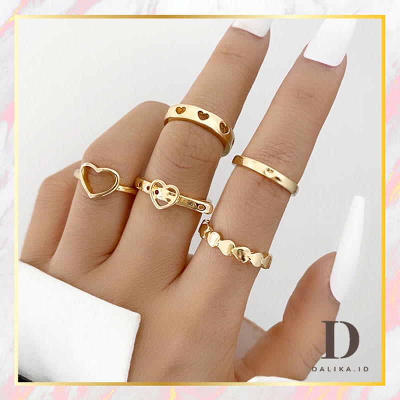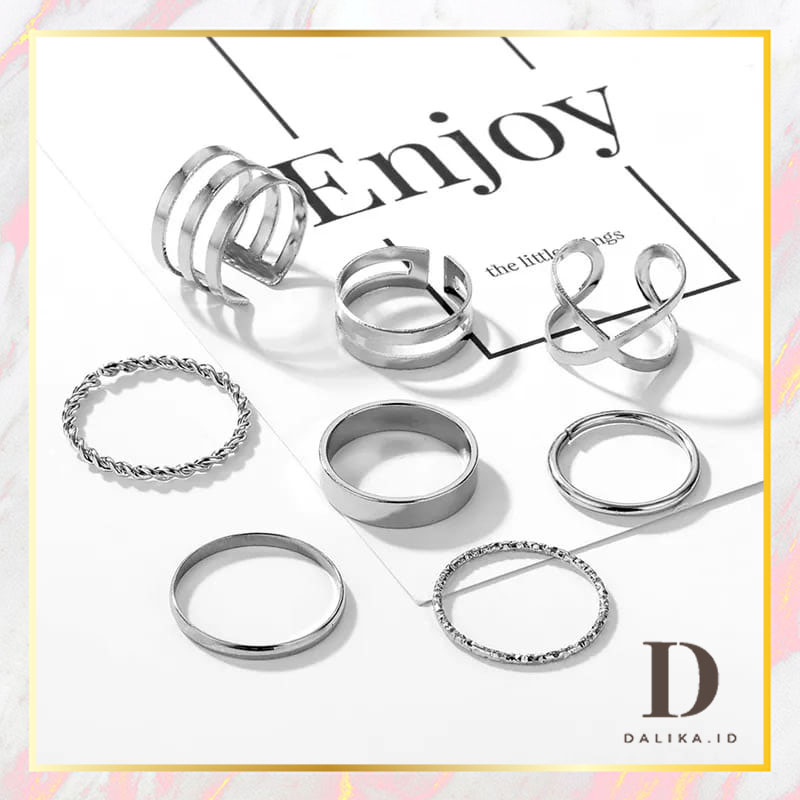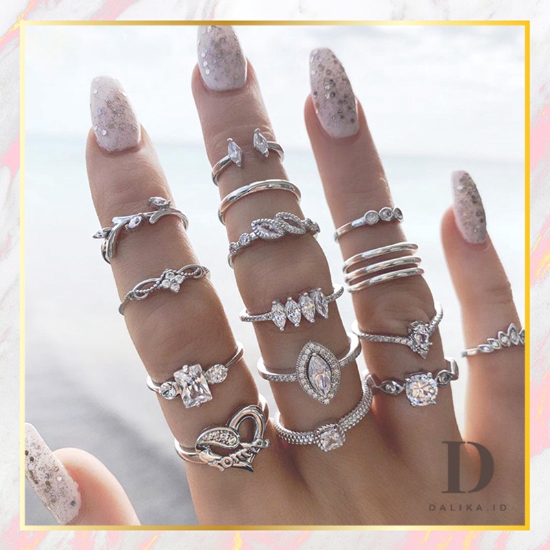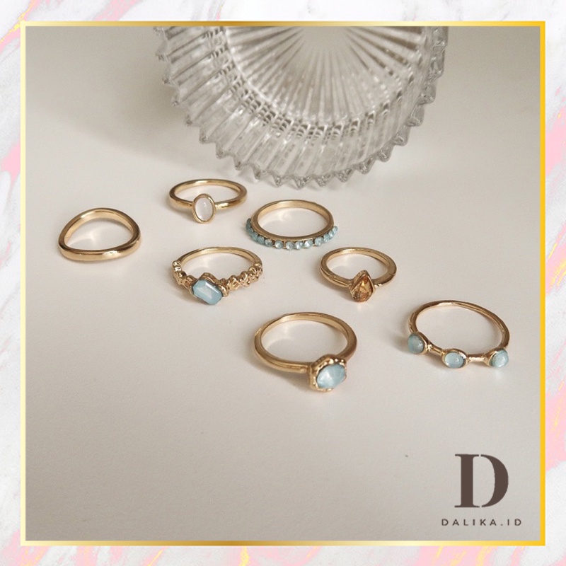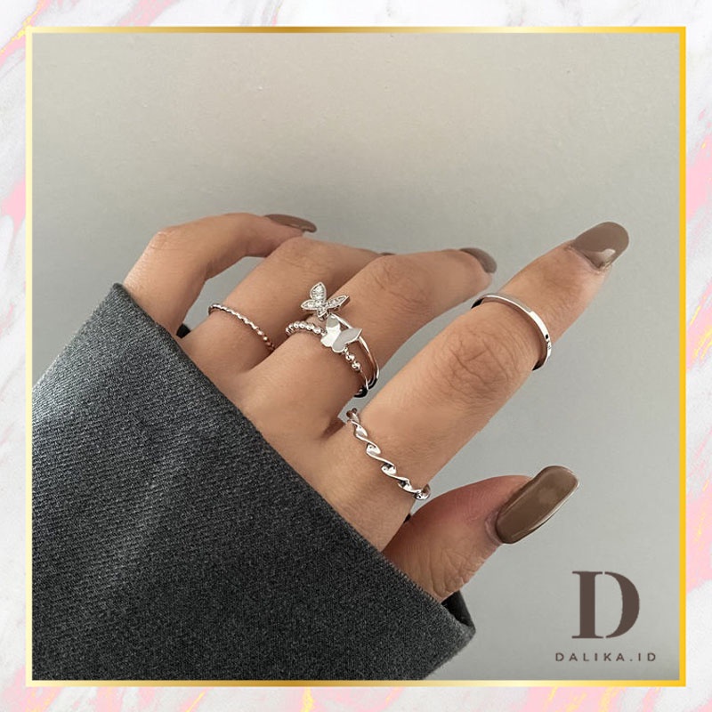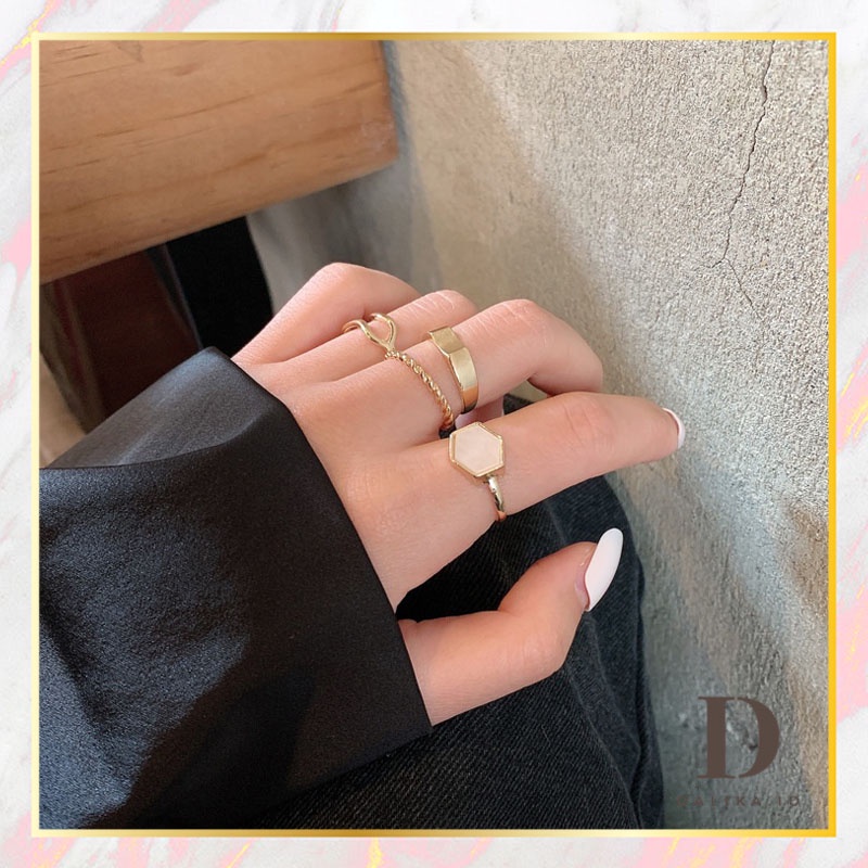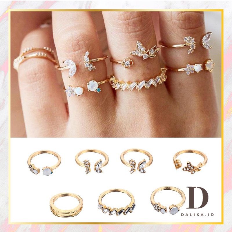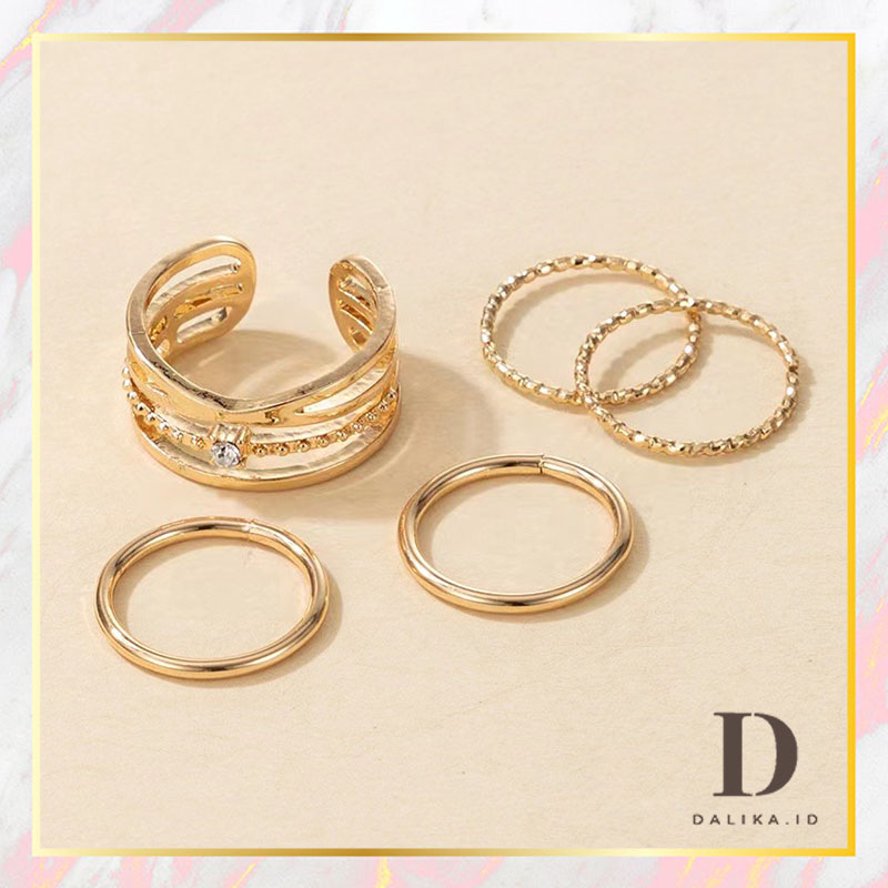 Cincin Set Fashion Korean Mutiara Diamond Gold Silver Aksesoris Wanita Dalika