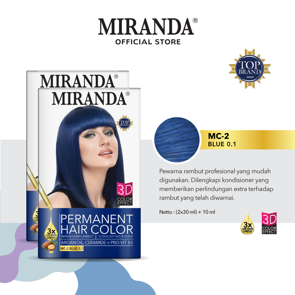 Miranda Hair Color (Cat Rambut Permanen) MC2 Blue 30ml (Paket 2 Pcs) | Semir Halal Warna Biru