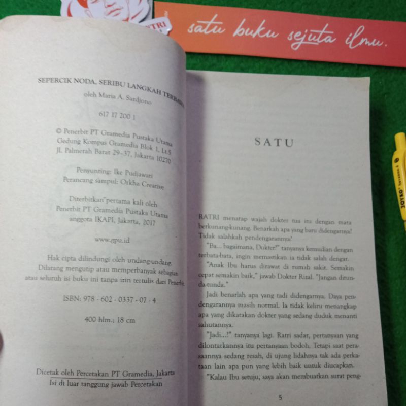 Buku Novel Dewasa : Sepercik Noda, Seribu Langkah Terbawa by Maria A. Sardjono.