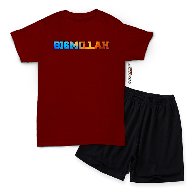 BAJU KAOS ANAK SETELAN BISMILLAH ISLAMI UNISEX POSITIF MERCH