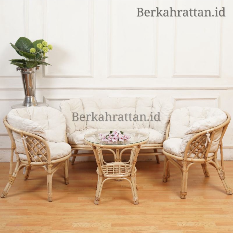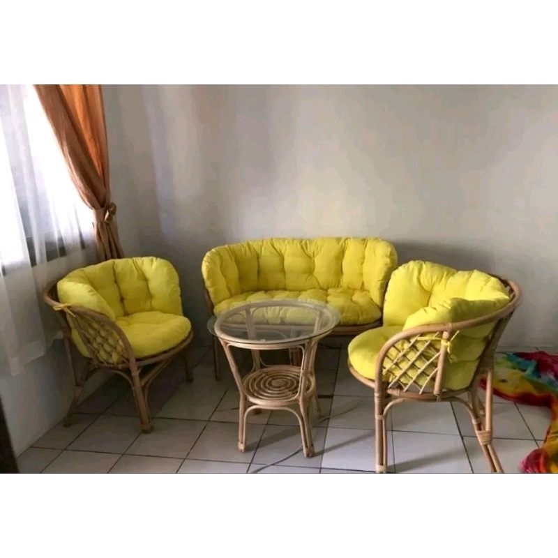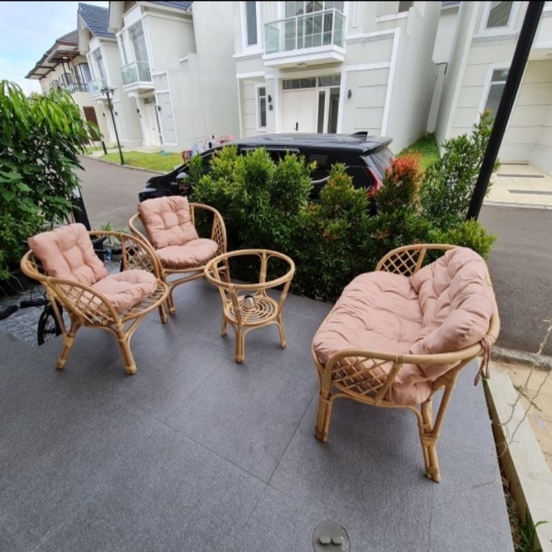 Kursi Tamu Bahama Rotan Minimalis 1 set / Set Kursi Teras Rotan Minimalis Modern