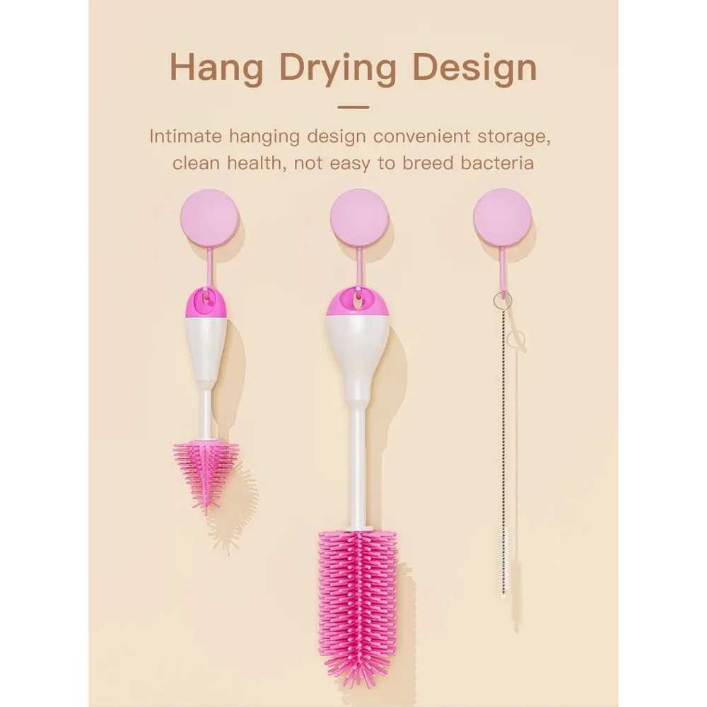LUQI Sikat Botol Bayi Silikon 3in1 360 Degree Rotation Pacifier Brush - SD8001