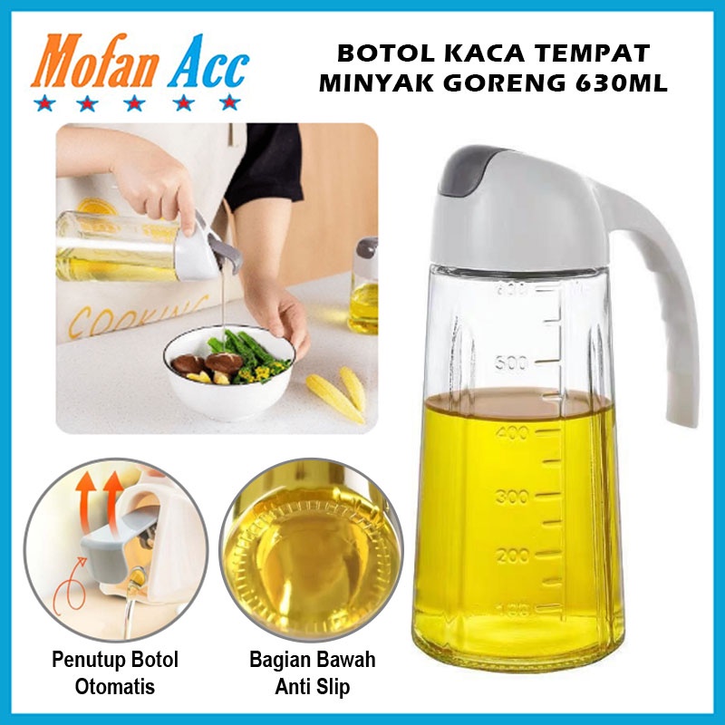 Botol Kaca Minyak Goreng 630ml / Bottle Oil Pot 630 ml Wadah Tempat Penyimpanan Kecap Saus Minyak Wijen Tutup Otomatis Anti Tumpah Mofan