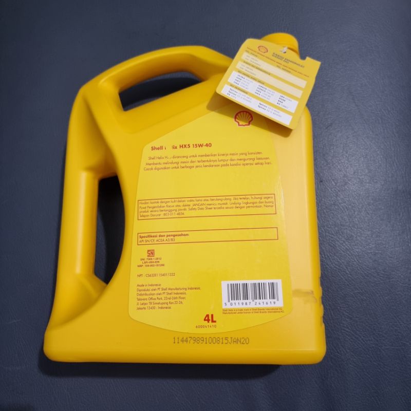 Oli Mesin Shell Helix HX5 SAE 15W-40 4 Liter 4L Bensin diesel Bonus Kartu Pengingat
