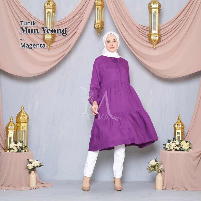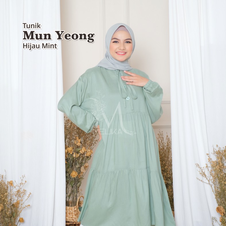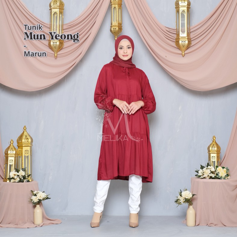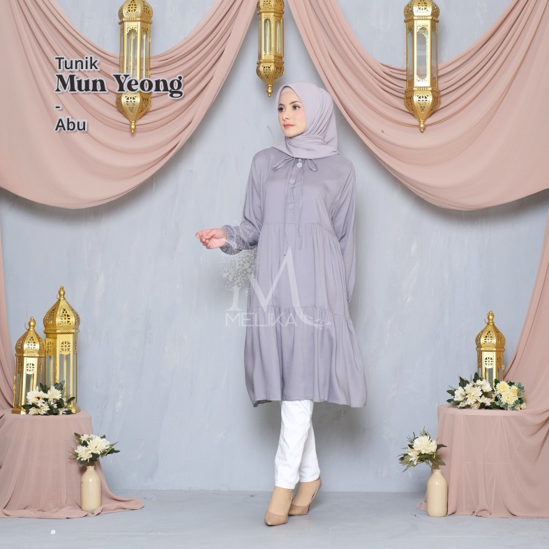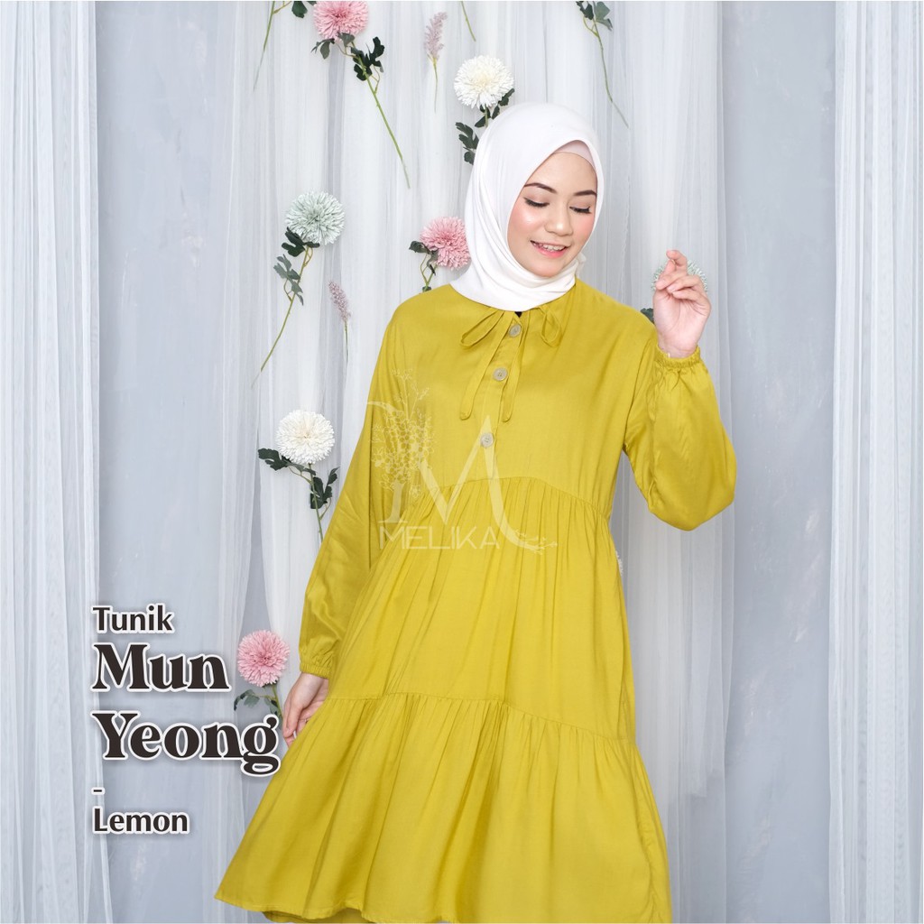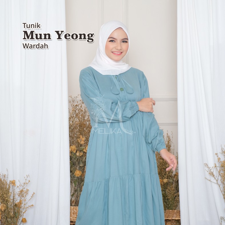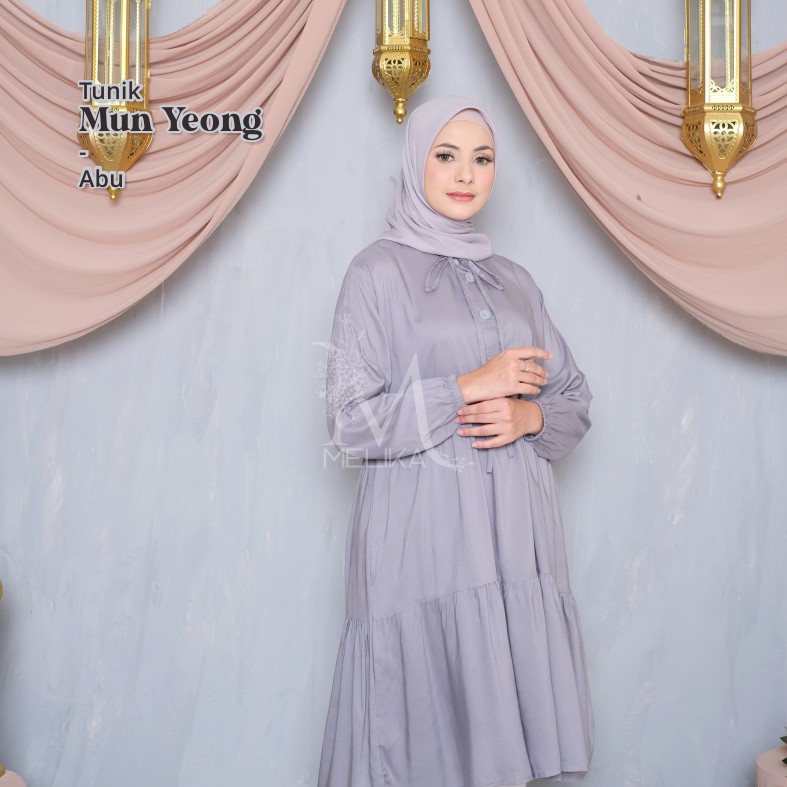 Melika - Tunik / Midi Dress Muslim Korea Bahan Rayon Polos Mun Yeong