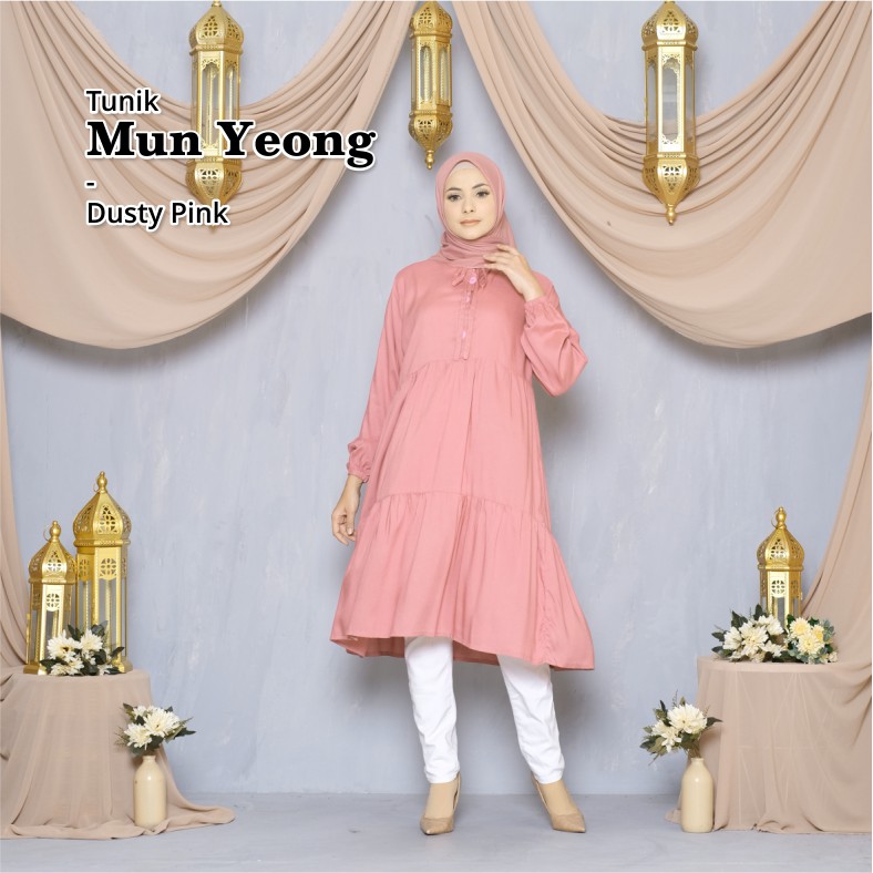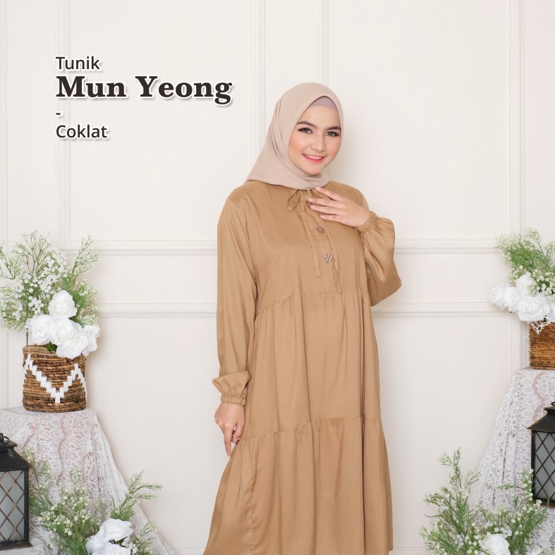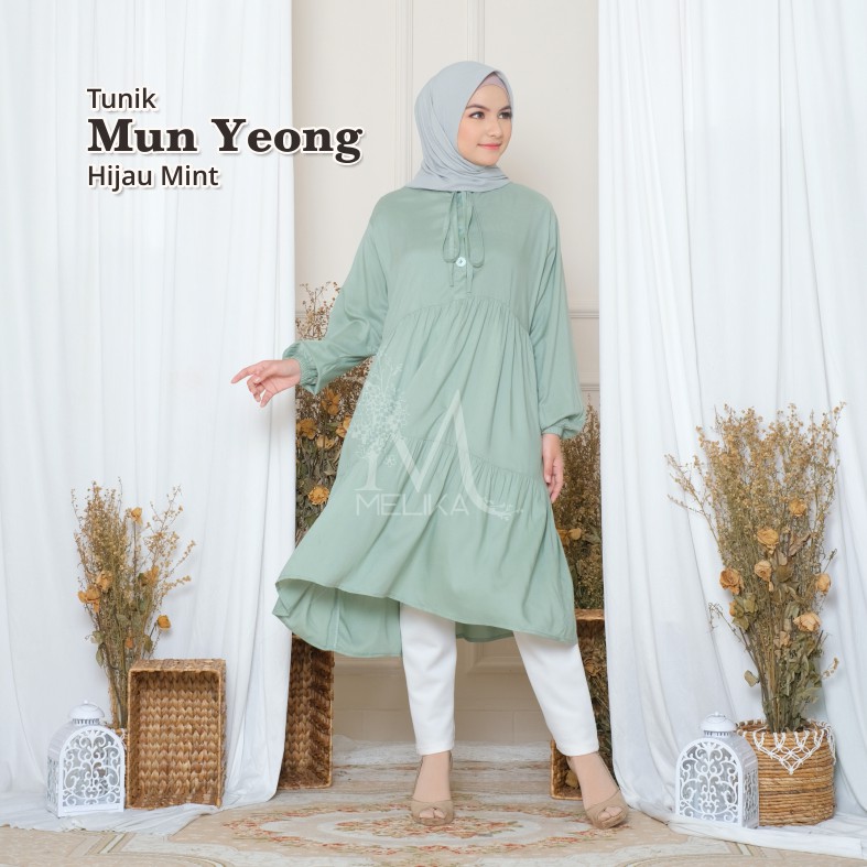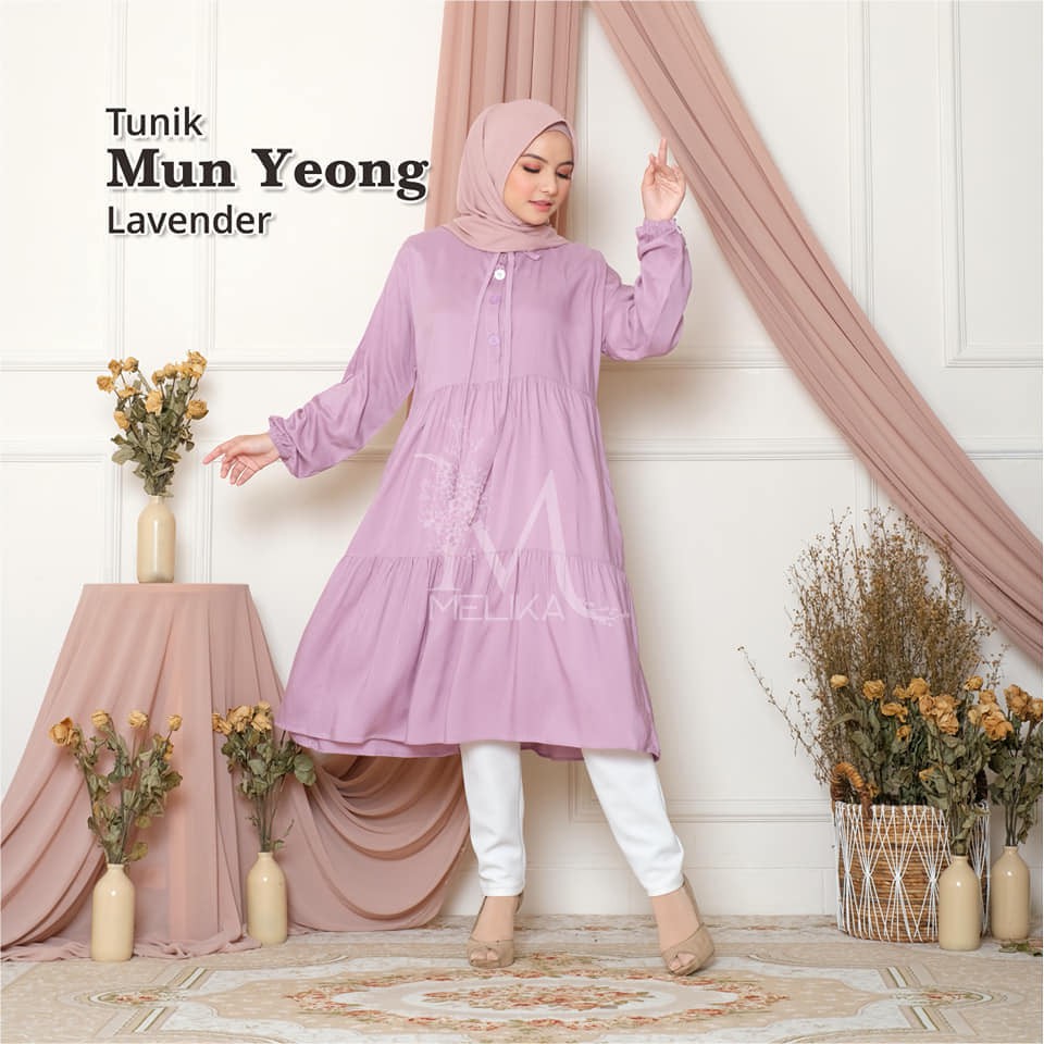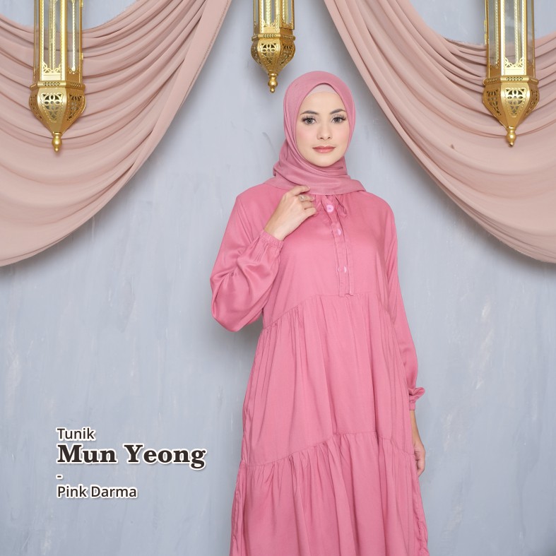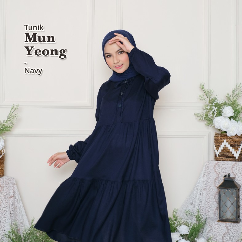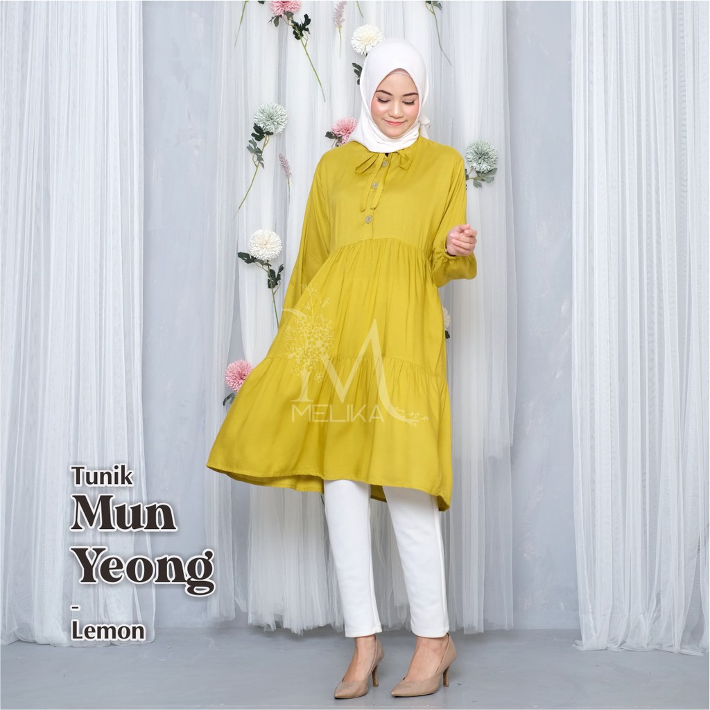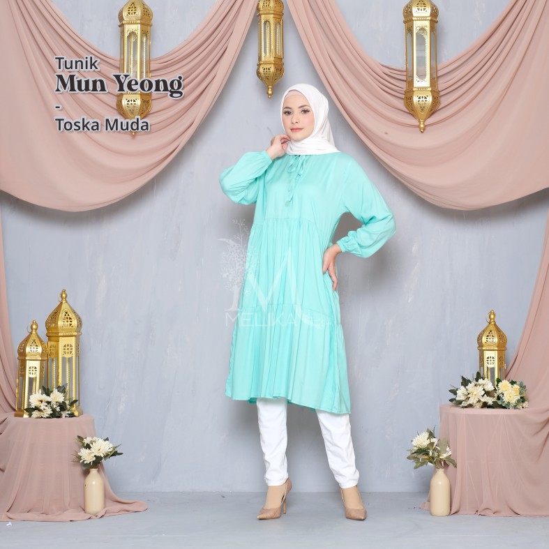 Melika - Tunik / Midi Dress Muslim Korea Bahan Rayon Polos Mun Yeong