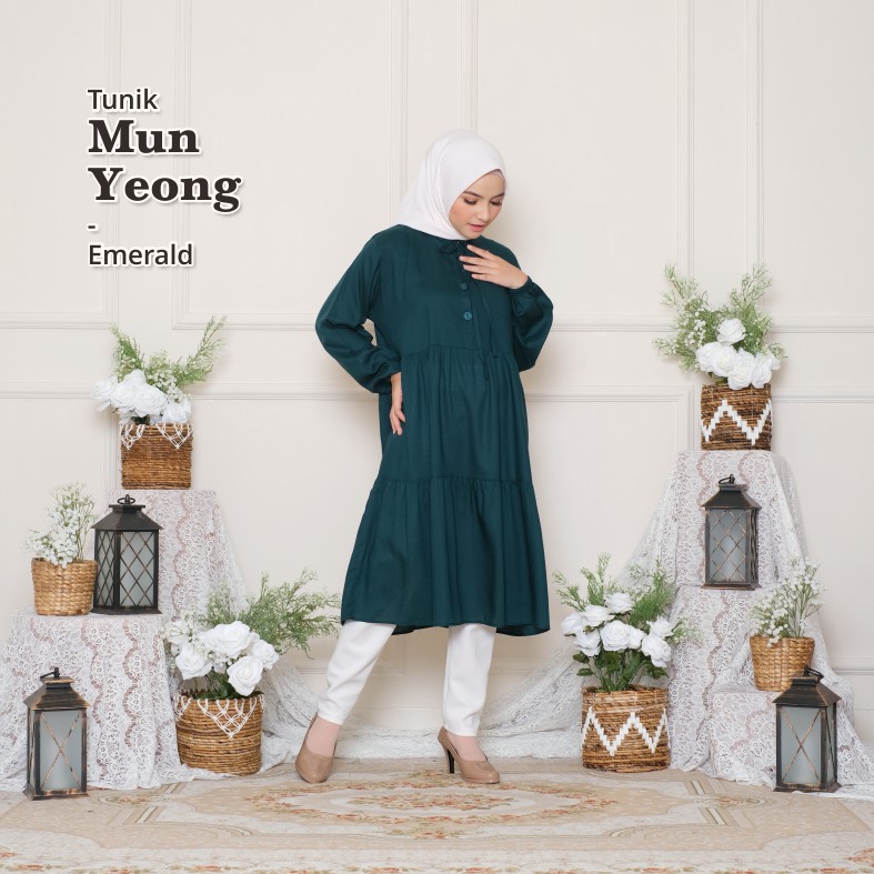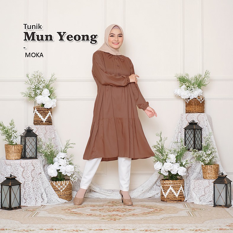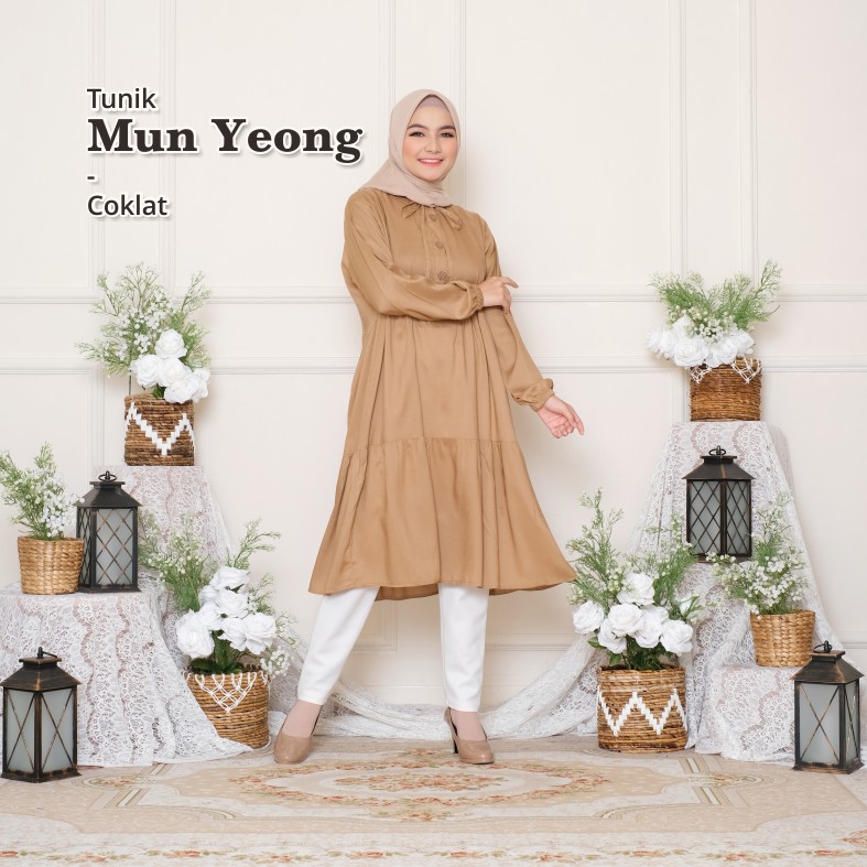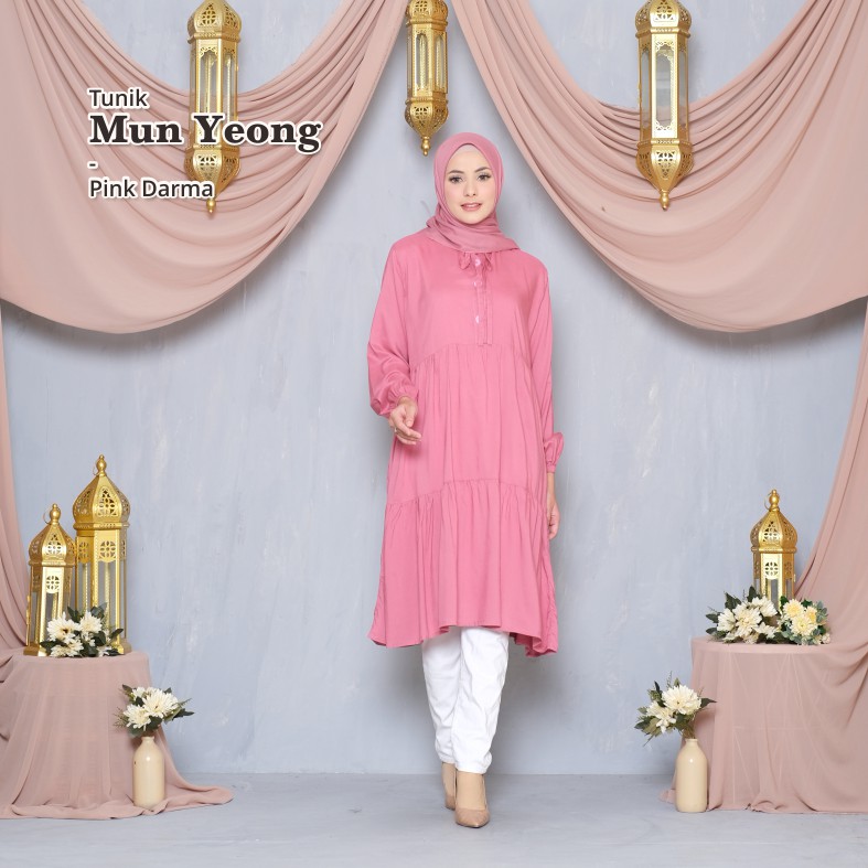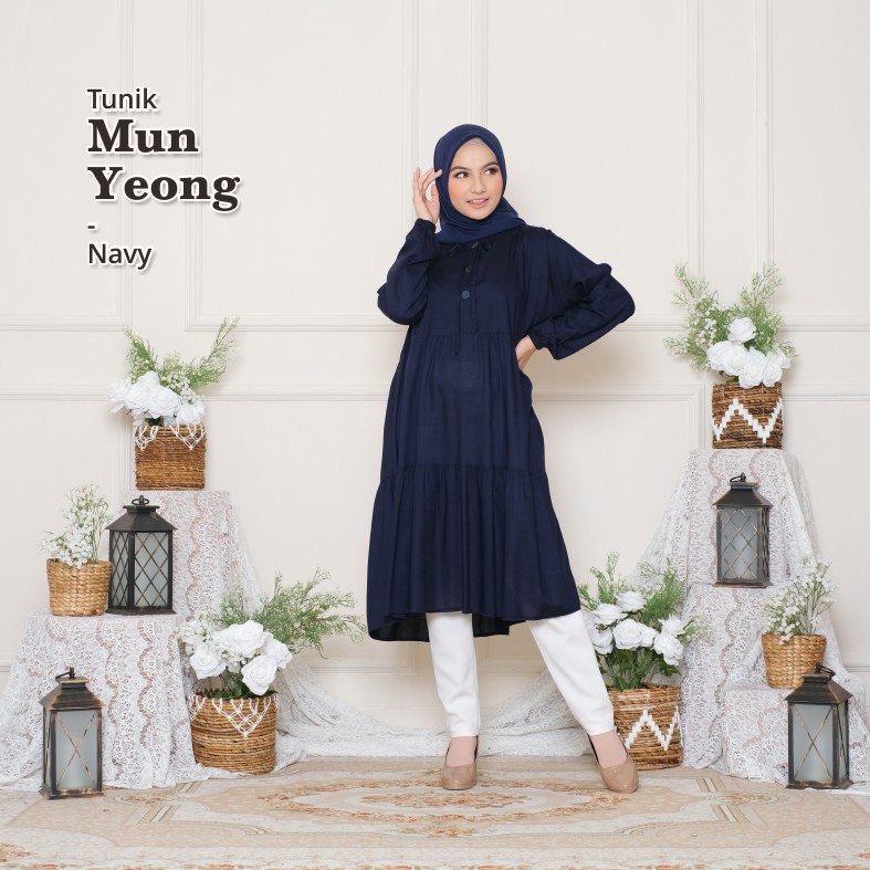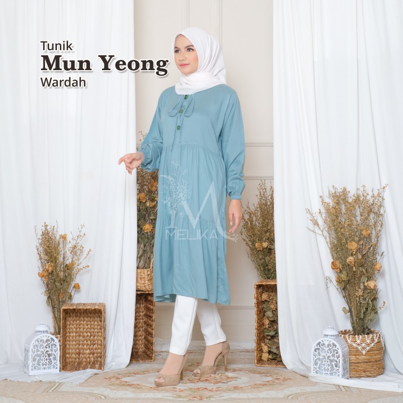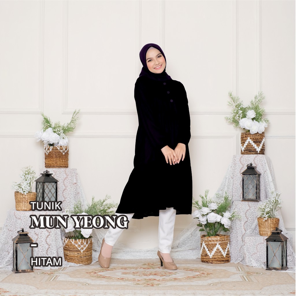 Melika - Tunik / Midi Dress Muslim Korea Bahan Rayon Polos Mun Yeong