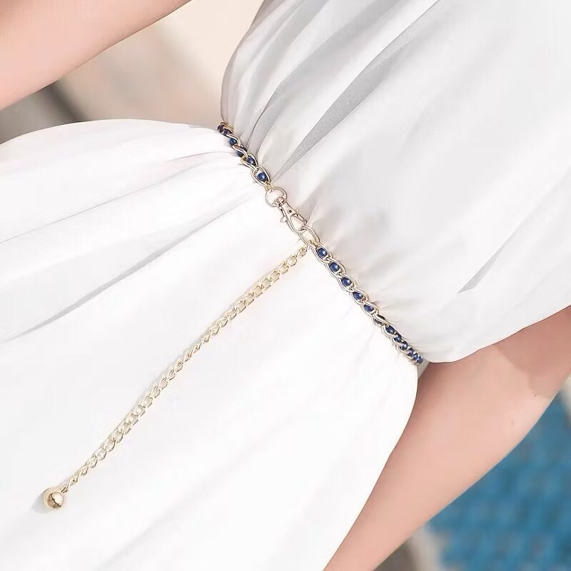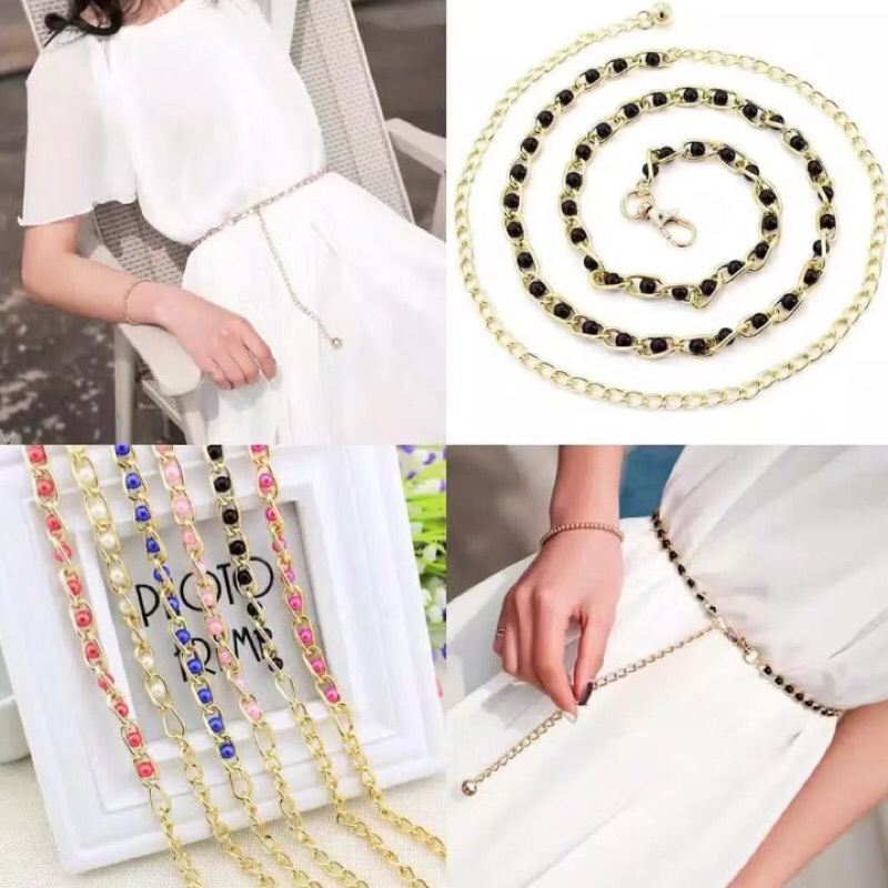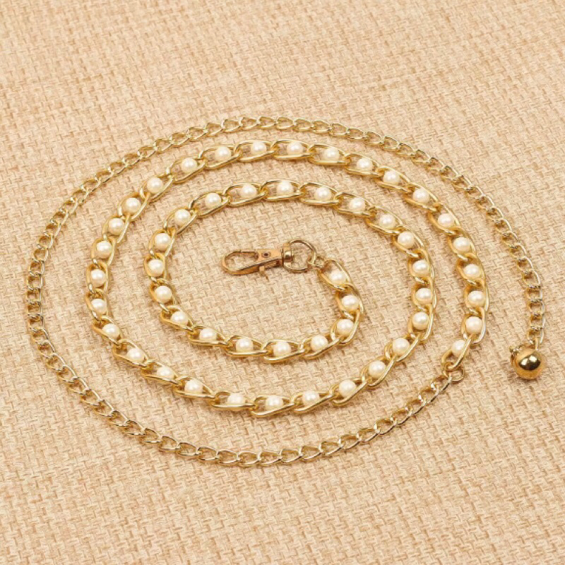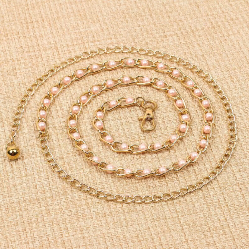 Ikat Pinggang Mutiara Wanita Untuk Gamis Dress Pants Sabuk Panjang Perempuan Gaya Sehari-hari Woman Pearl Belt