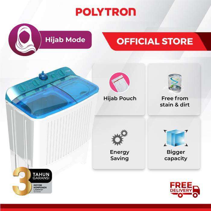 Mesin Cuci Polytron PWM 8072 B N Tutup Transpatan Biru Coklat 8 Kg