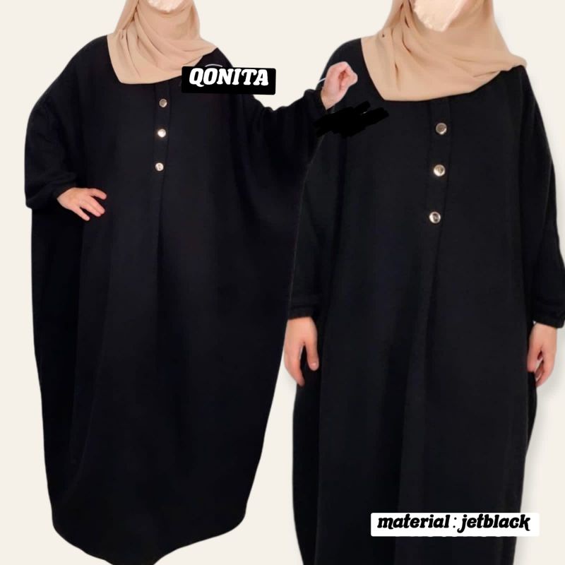 KAFTAN QONITA HITAM JETBLACK ANAK S M L XL XXL DAN DEWASA ALLSIZE ALKHATIB COLLECTION