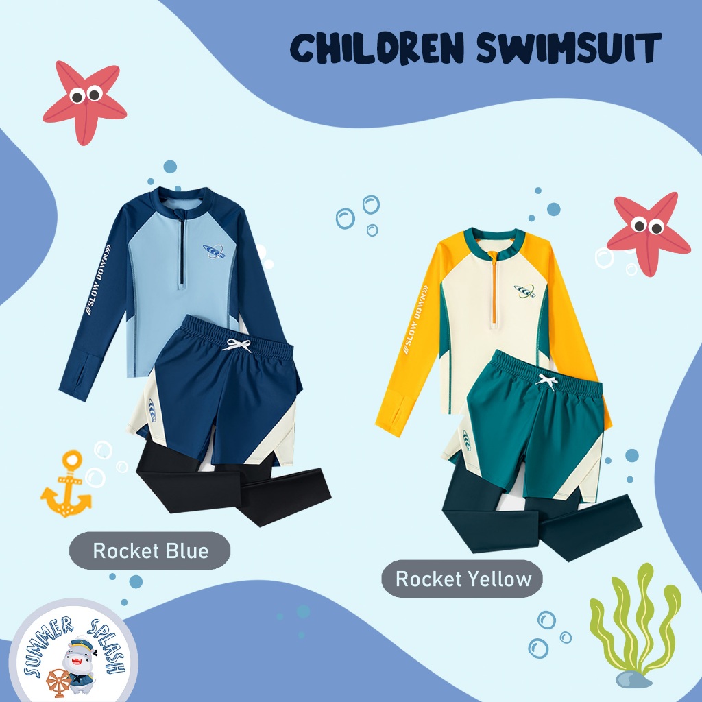 SUMMERSPLASH - SWIMSUIT SET BAJU RENANG ANAK LAKI-LAKI (NAUTICAL SET PANJANG & ROCKET)