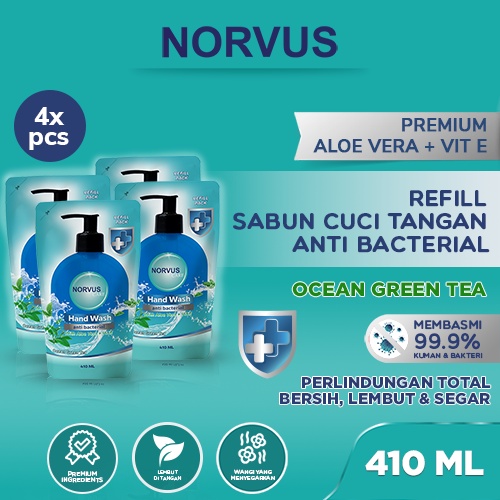 Sabun Cuci Tangan Anti Bakteri Ocean Green Tea 4 pcs x 410ml - NORVUS