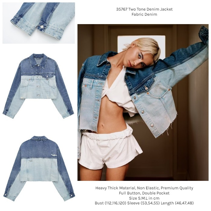 35767 Jeans Wanita Outfit Two Tone Denim Jacket