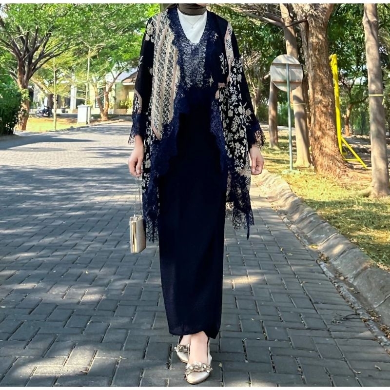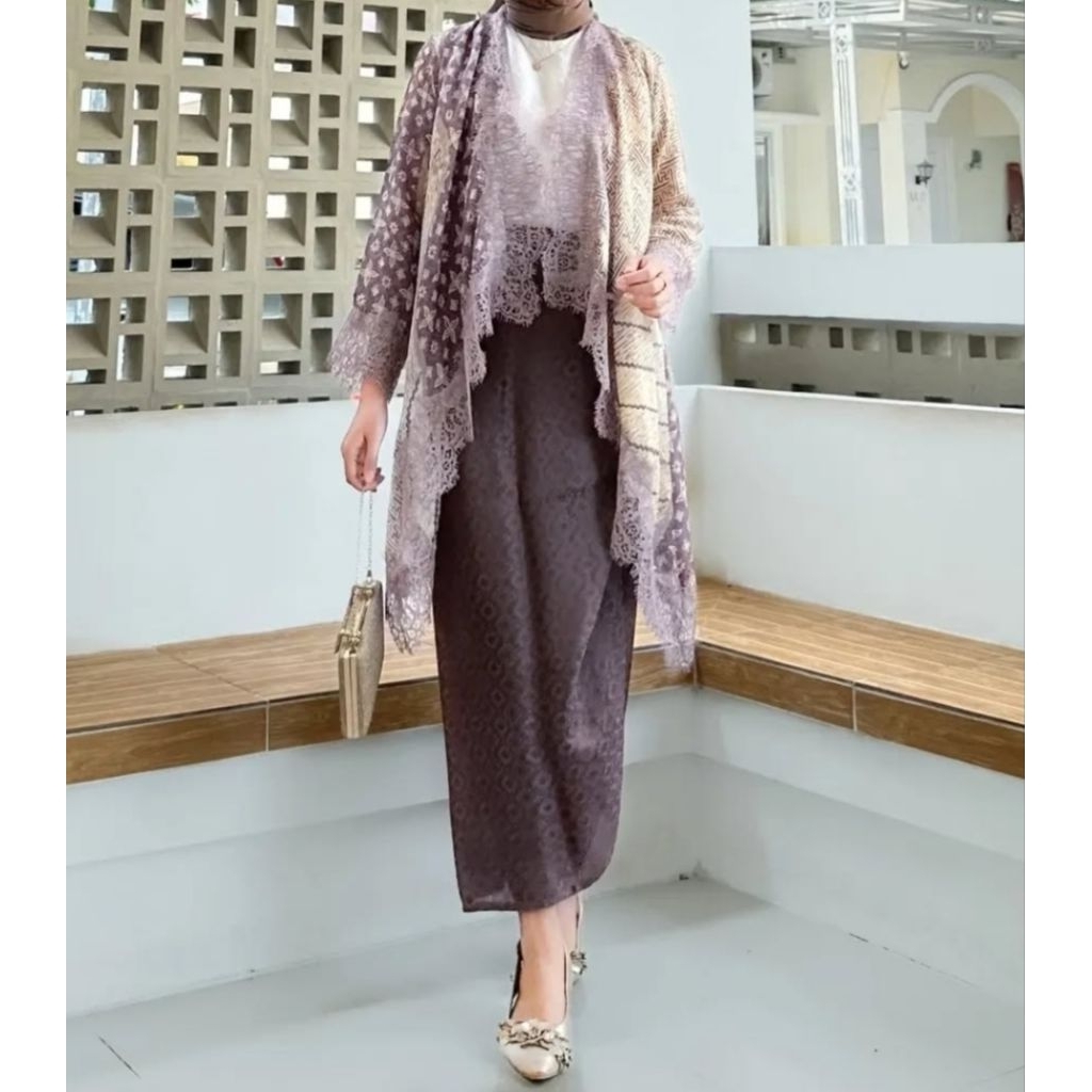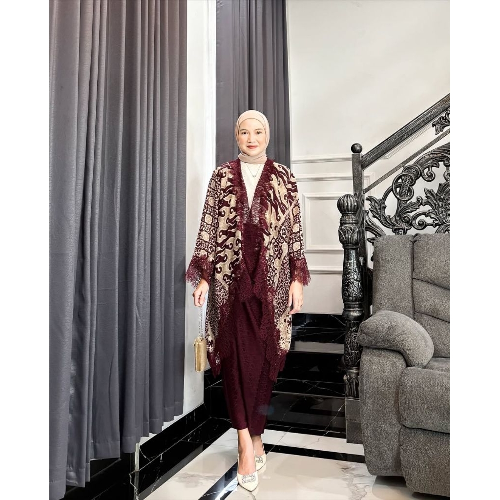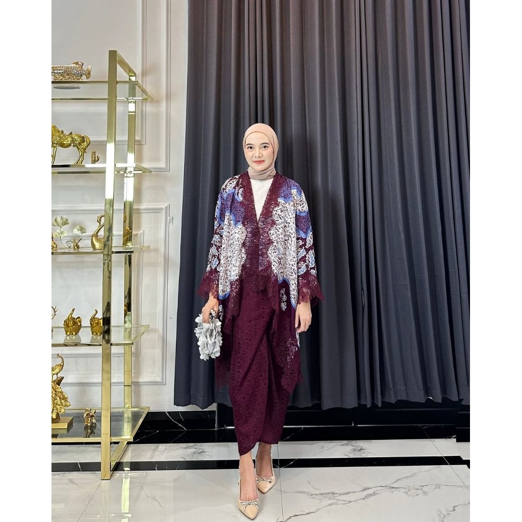 KAZIMAH Set Outer Lace Viscose Batik Modern // Setelan Kondangan // outer renda // baju pesta // batik