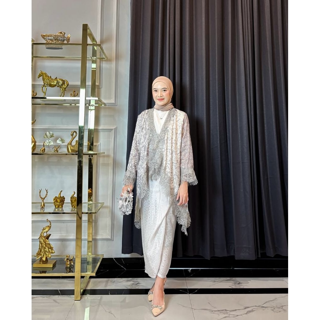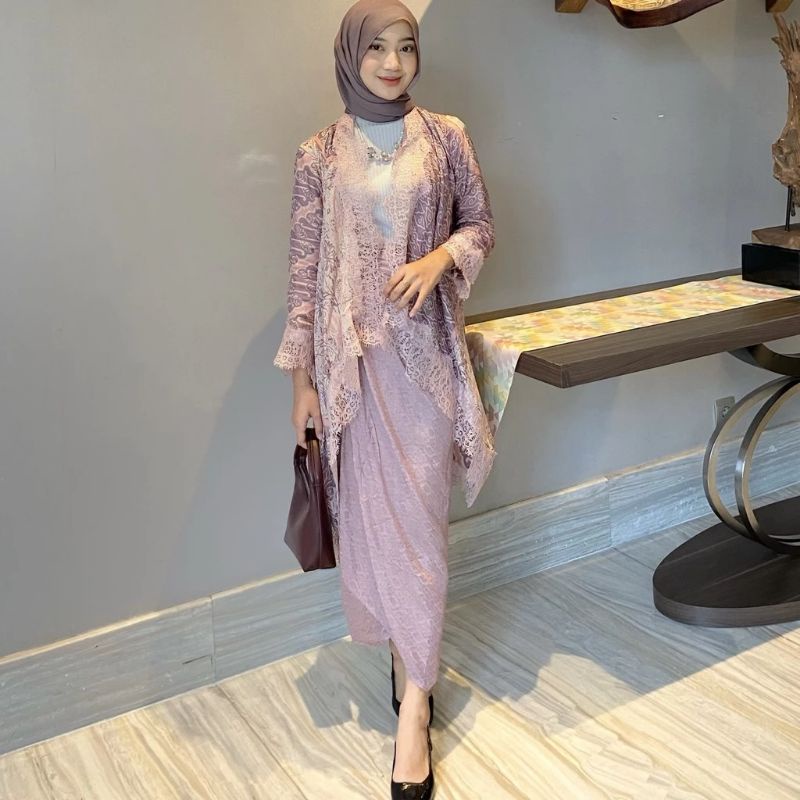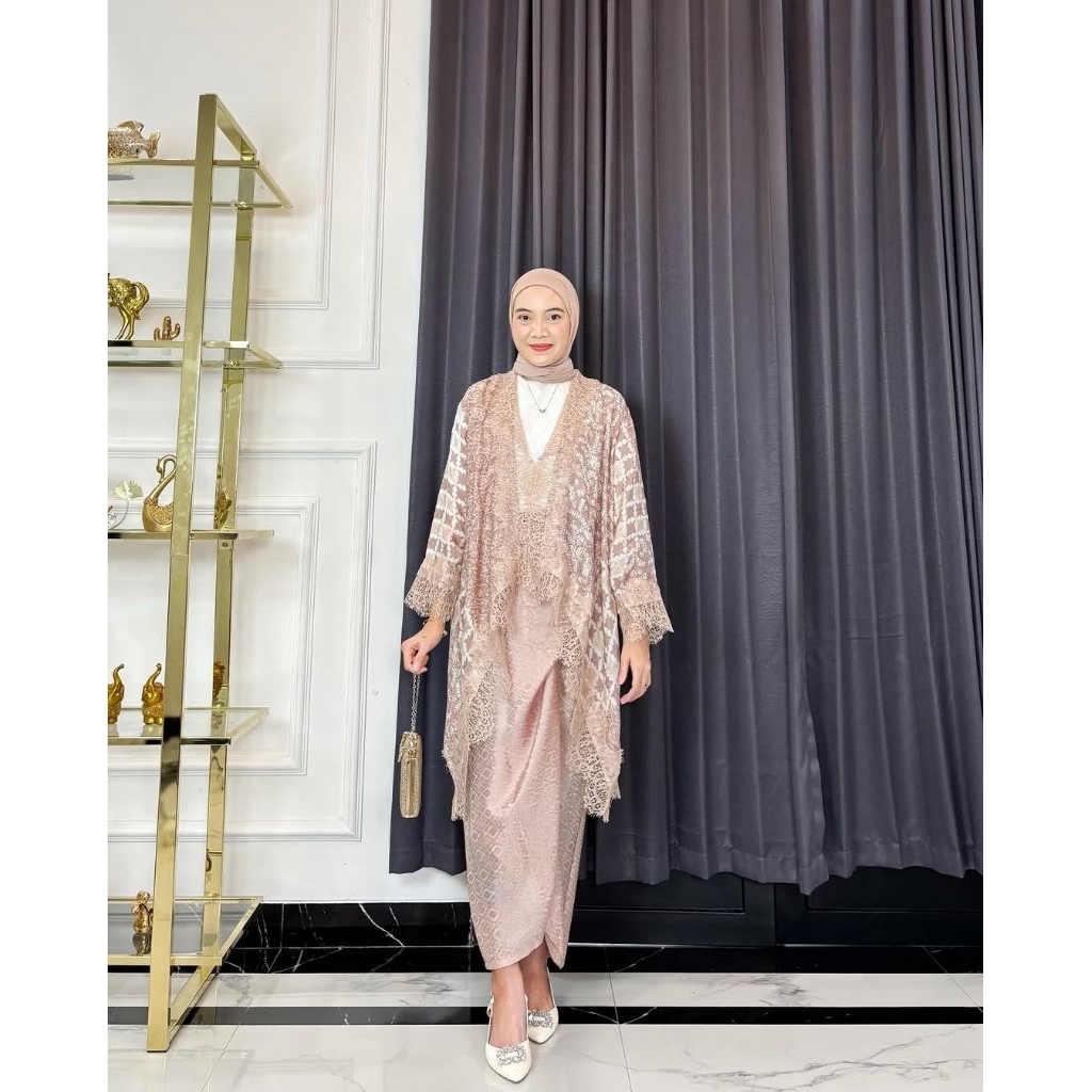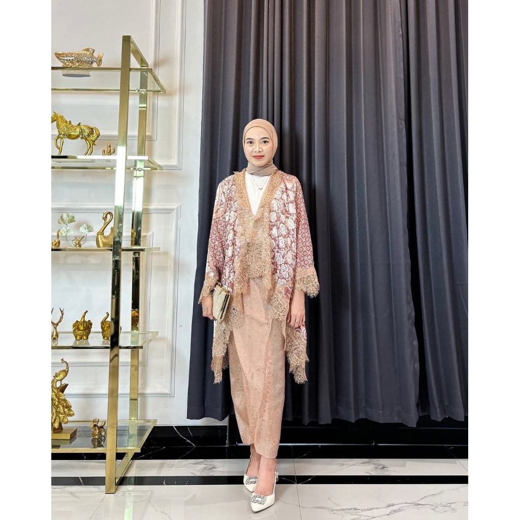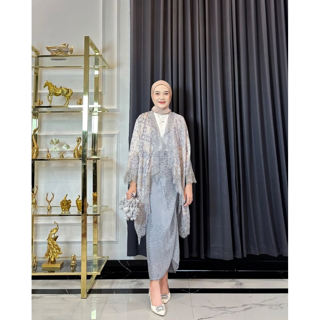 KAZIMAH Set Outer Lace Viscose Batik Modern // Setelan Kondangan // outer renda // baju pesta // batik