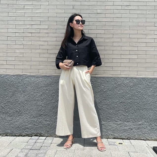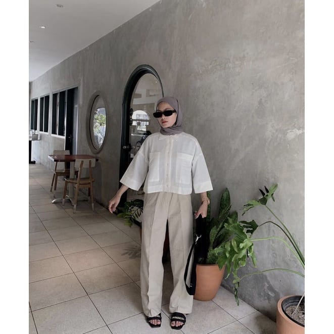 Kemeja Crop Oversize Linen / Kemeja Crop Wanita / Kemeja Crop