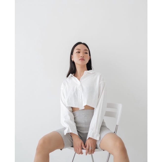 Alexa Kemeja Crop / Atasan Wanita Lengan Panjang / Crop Shirt / Kemeja Crop Alexa