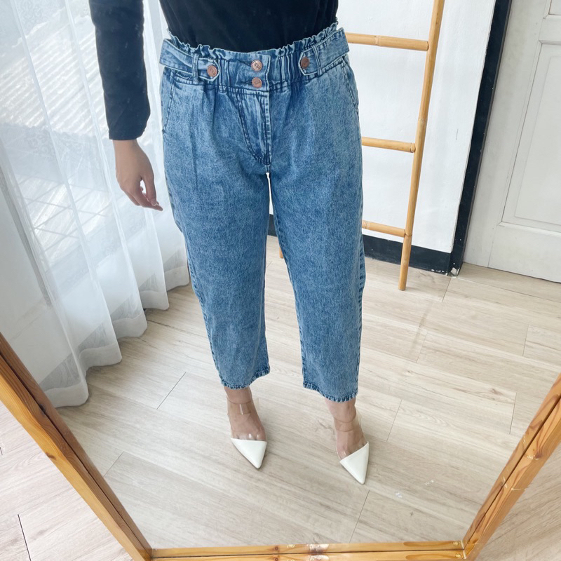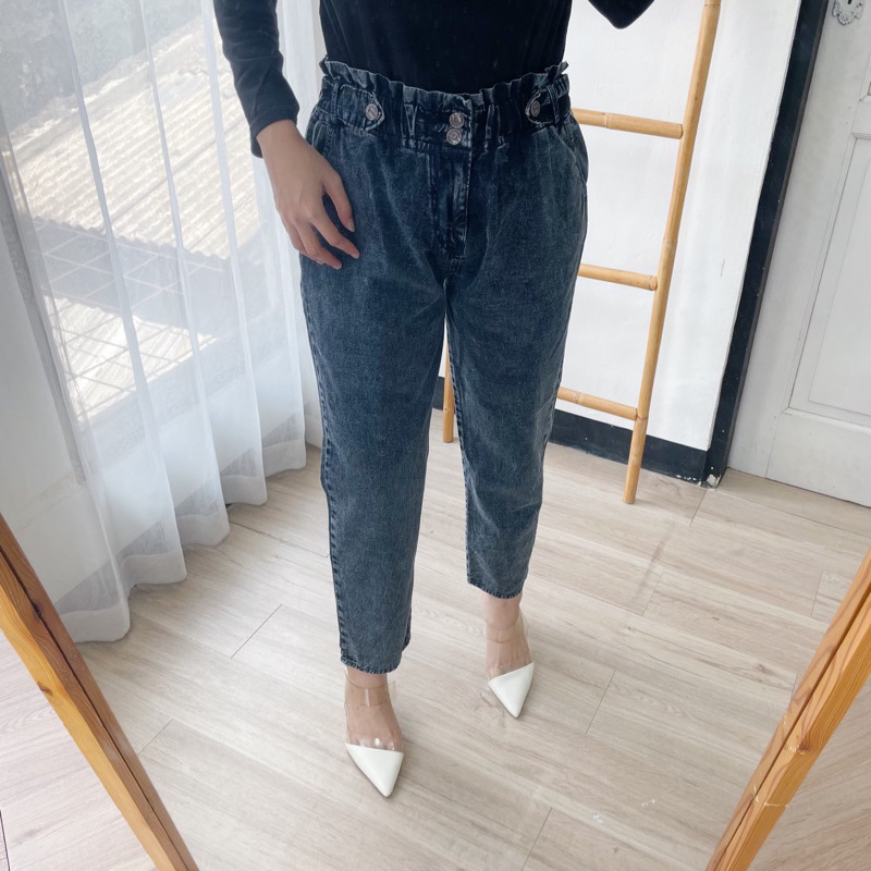 Hud - Celana Jeans Boyfriend Drako Jeans Snow Blue Pinggang Karet