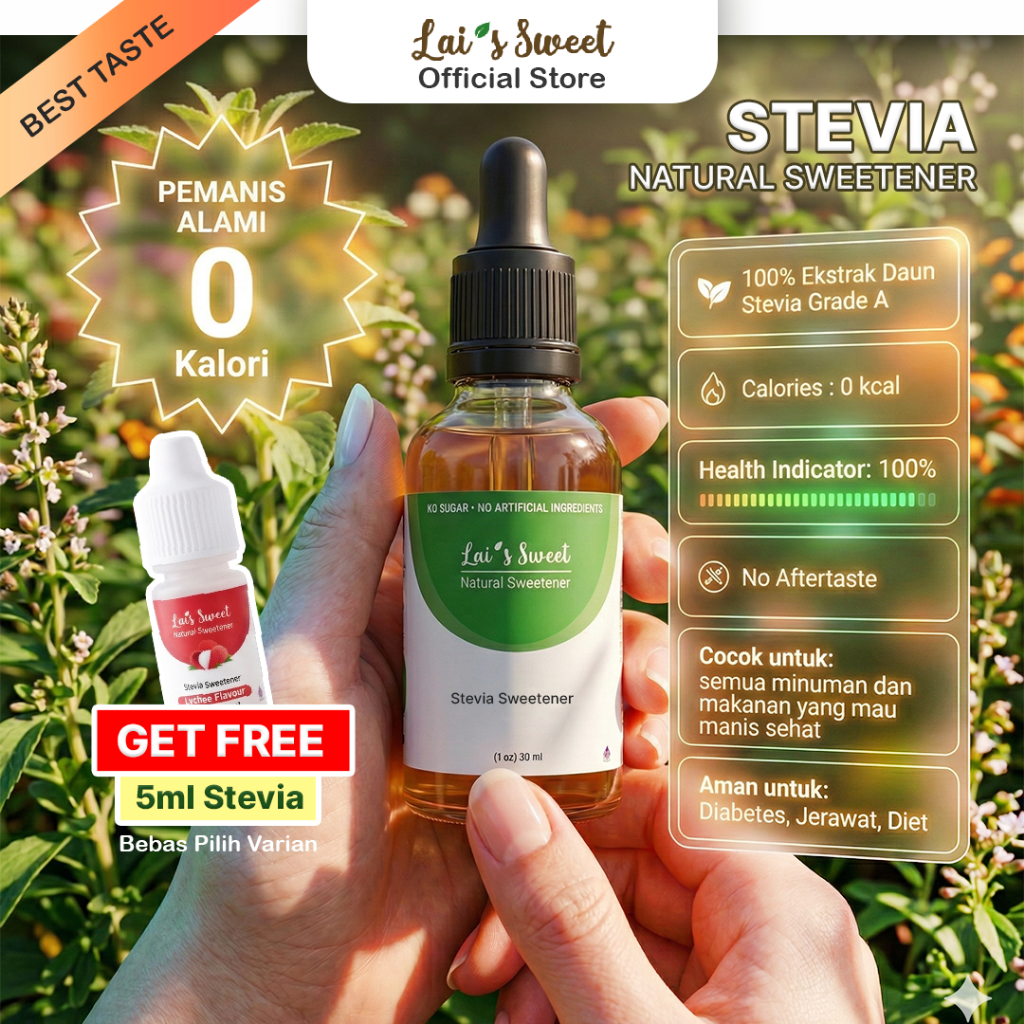 Lais Sweet Stevia Tetes Original Combo 30ml+ FREE 5ml (Rasa) HALAL & BPOM aman Diabetes & KETO