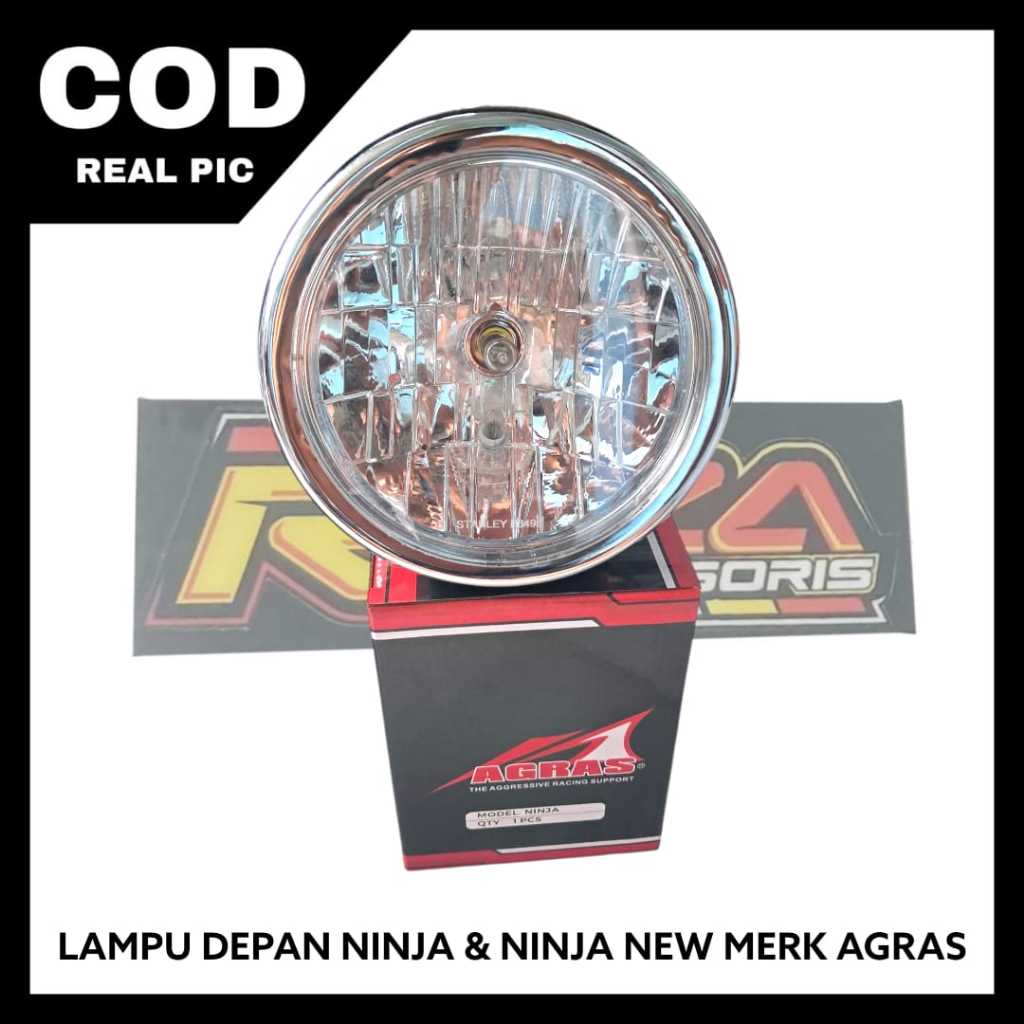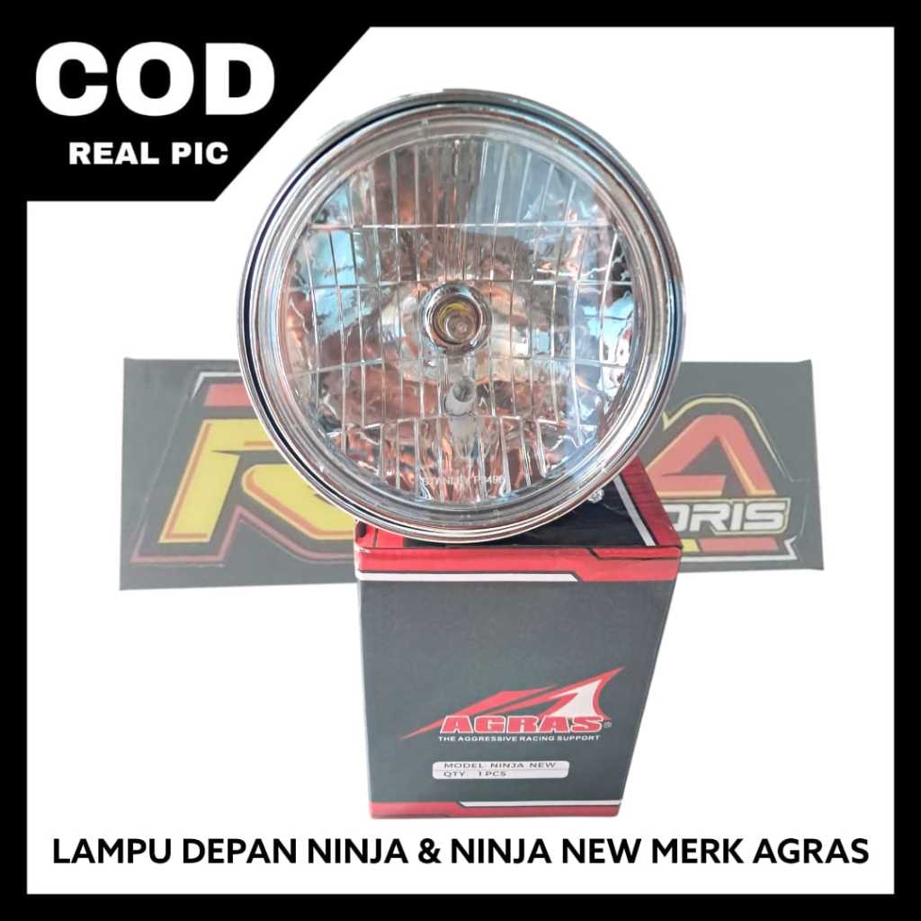 REFLEKTOR LAMPU DEPAN NINJA SS 7 INCH BATOK LAMPU DEPAN NINJA R SS BULAT CROM DOBEL RING MERK AGRAS