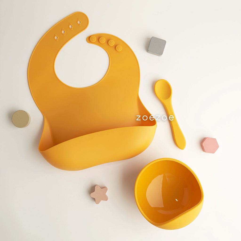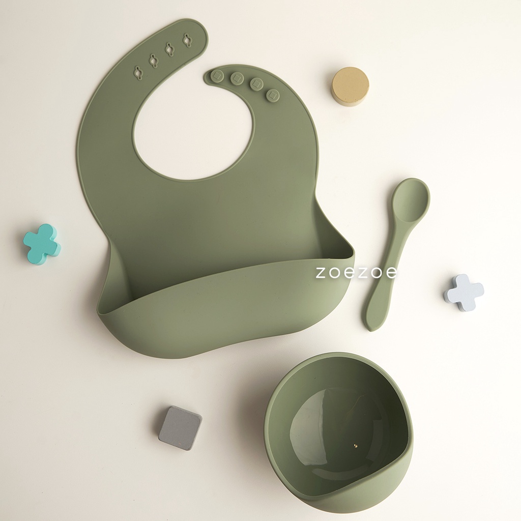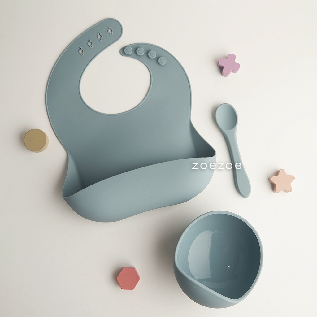 ZOEZOE Silicone Bib Suction Plate Bowl Spoon Set Celemek Piring Mangkok Sendok Makan Bayi Silikon