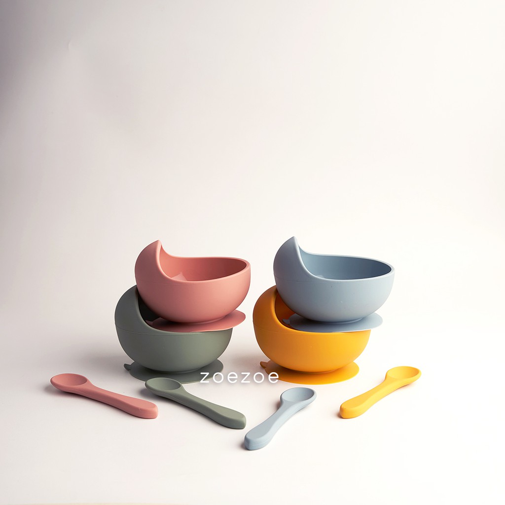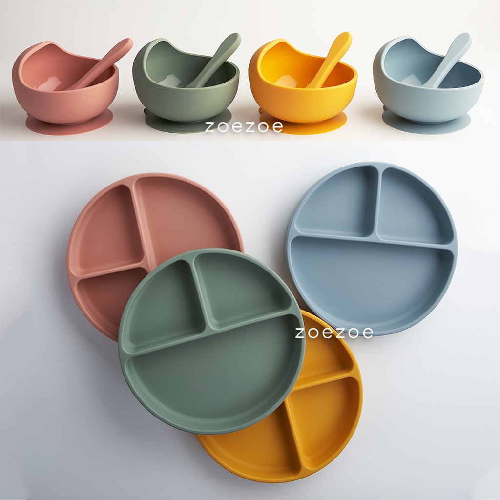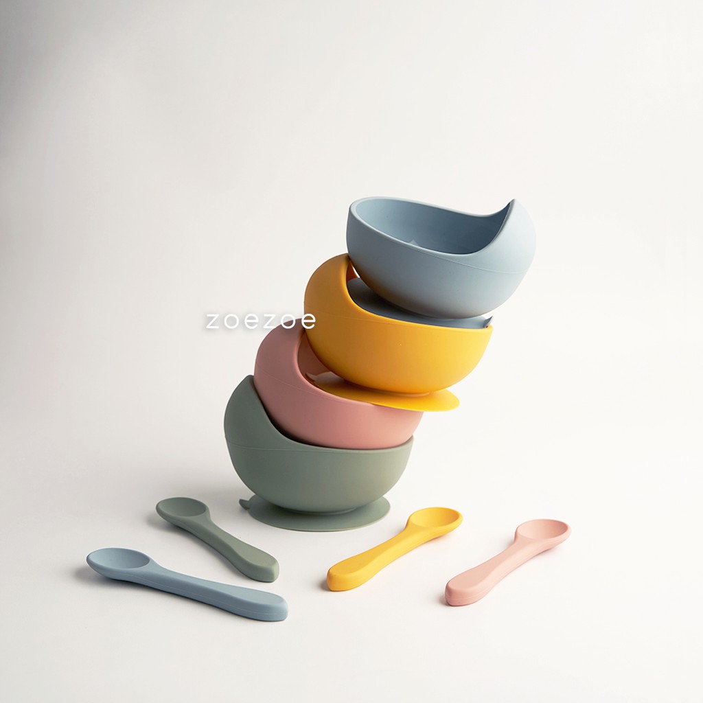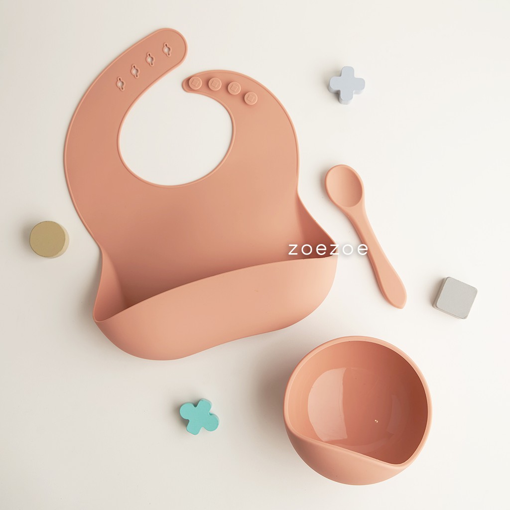 ZOEZOE Silicone Bib Suction Plate Bowl Spoon Set Celemek Piring Mangkok Sendok Makan Bayi Silikon