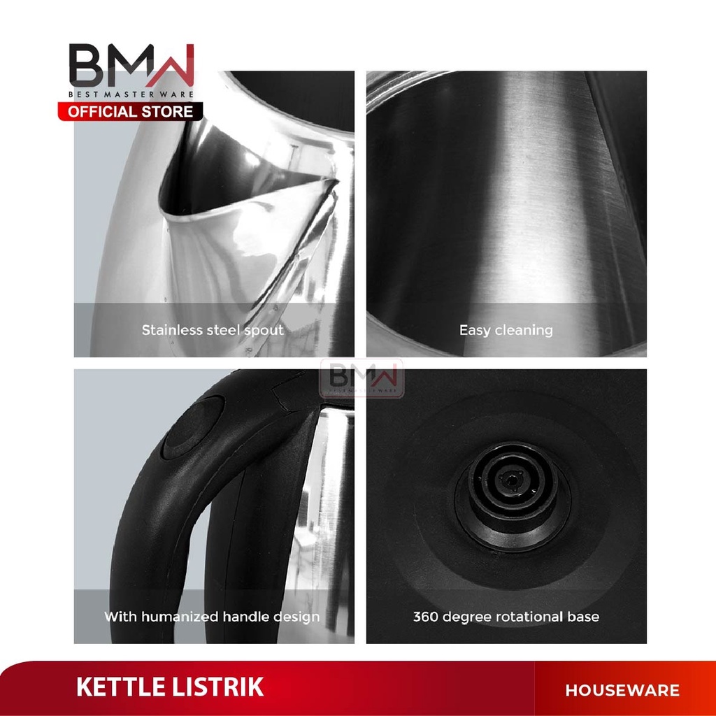 BMW Kitchenware - Teko Air Minum Teko Kettle Electric Kapasitas 2L Teko Listrik Stainless Steel Pemanas Air Kettle Besar