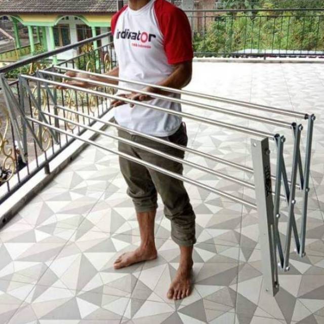 Jemuran Baju Pakaian Dinding 200CM/Jemuran Dinding Stainless Steel/Jemuran Lipat Dinding BerKwalitas Plbok Bergaransi