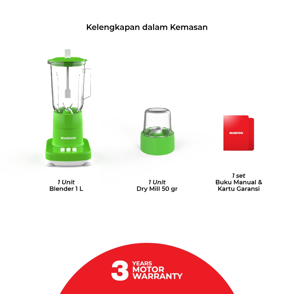 MASPION BLENDER MT-1272 GL 2IN1 WITH DRY MILL (1L)-PUTIH