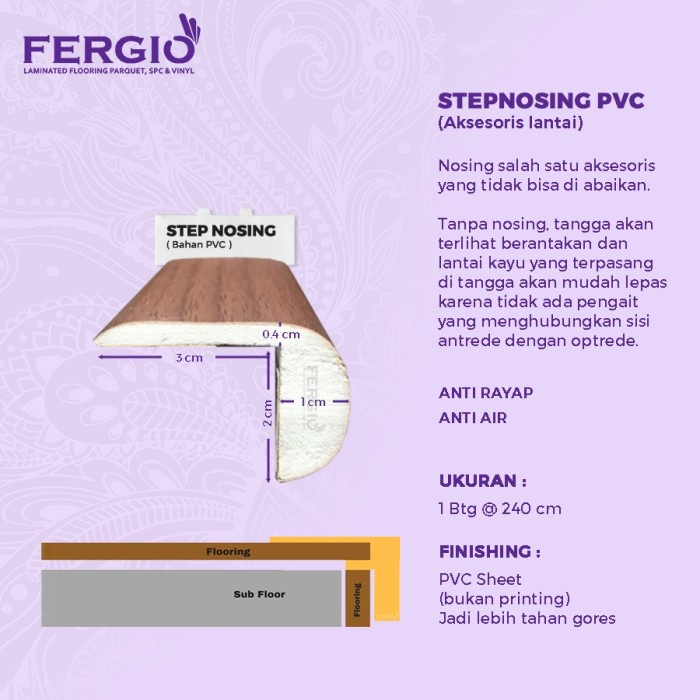 Floor Step Nosing Pvc Untuk Lantai Kayu Parket Laminate / Lantai Vinyl