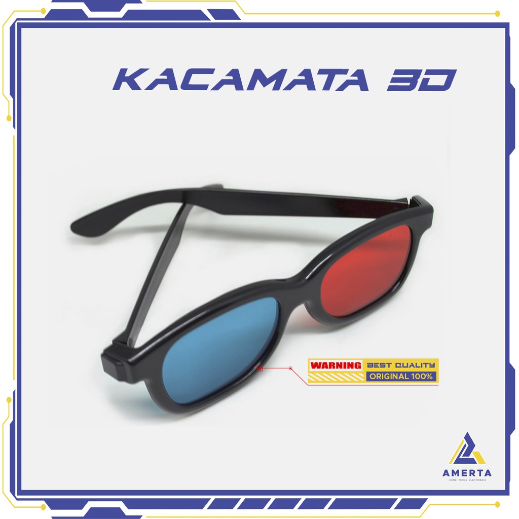 3D Glasses Plastic Frame Kacamata 3D Bioskop/ H3 Merah Biru Film 4D Movie HD 4K Frame Hitam Kacamata