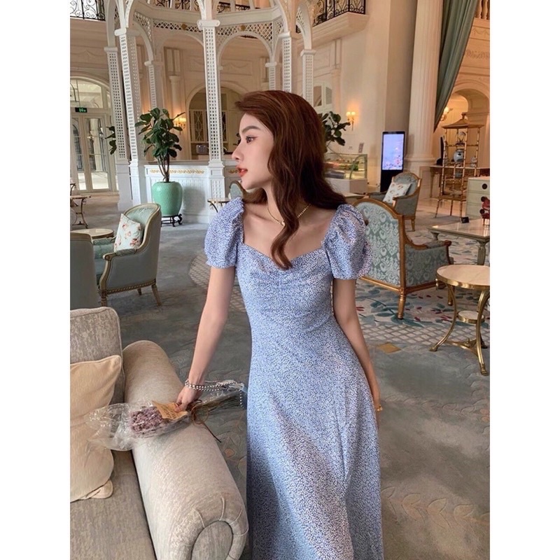 Han So hee midi dress square neck korean style new collection nevertheless casual import / Gaun wanita murah motif Polkadot bergaya Korea kekinian impor - D199
