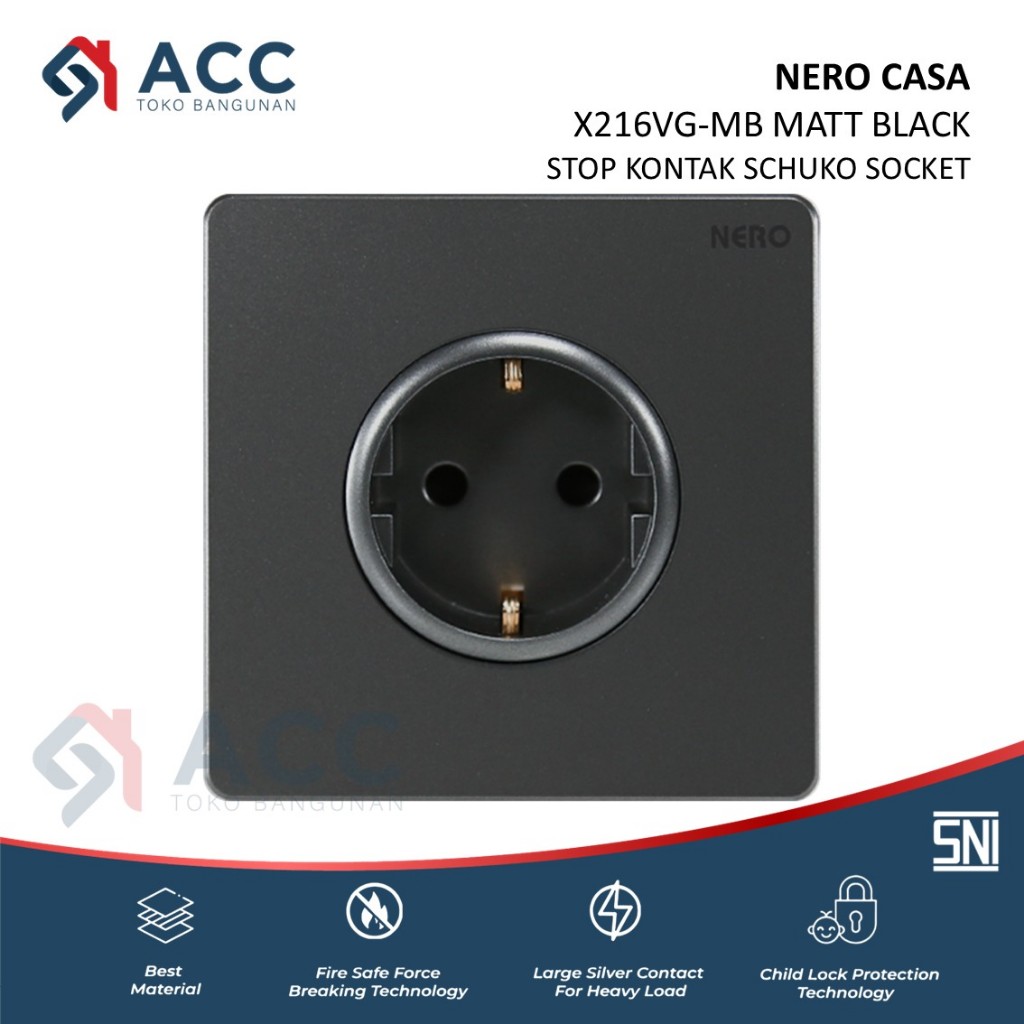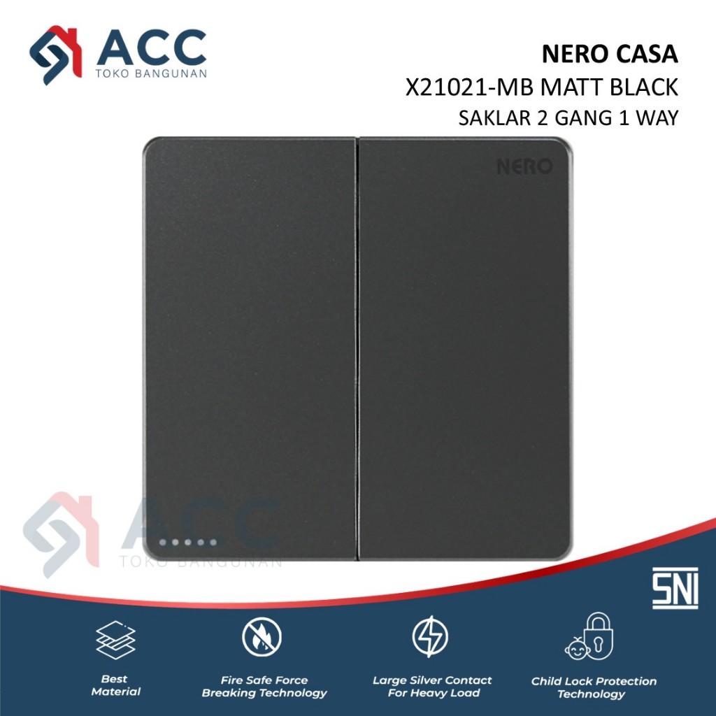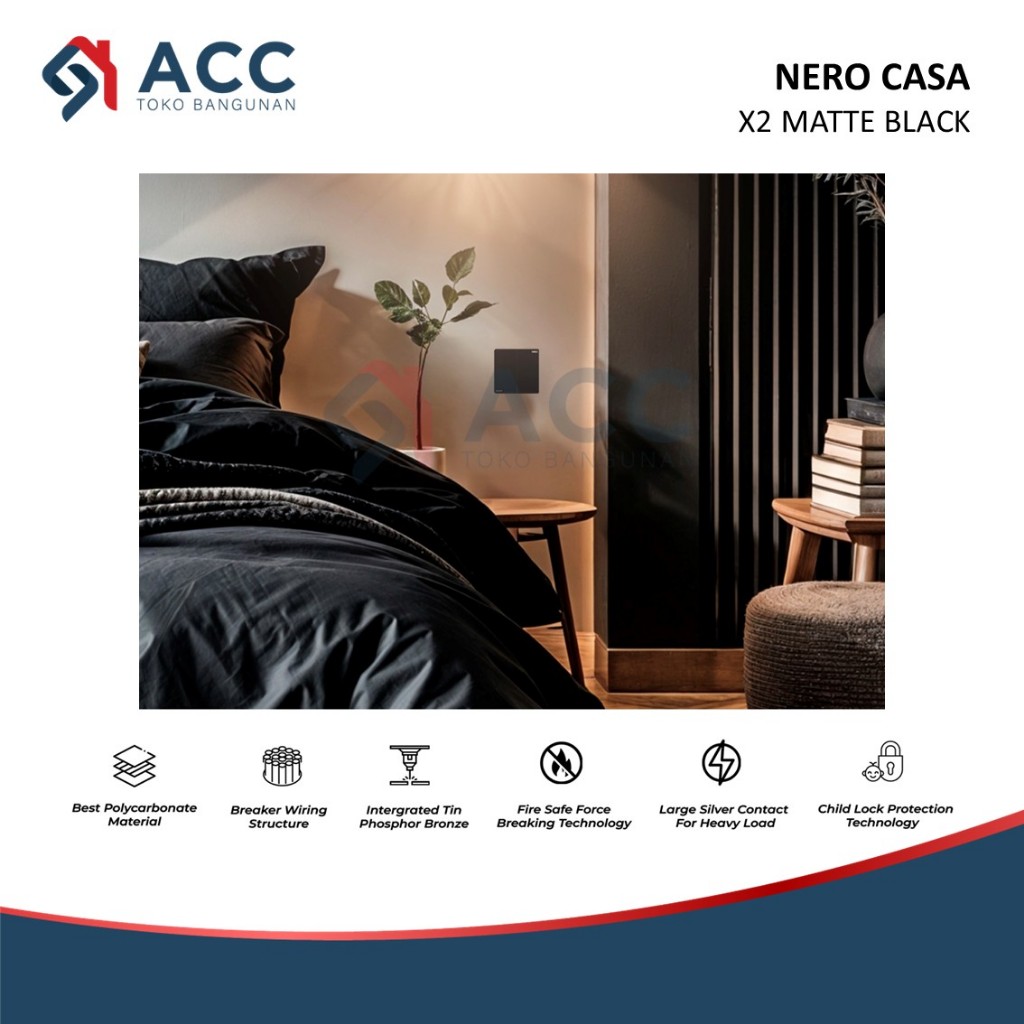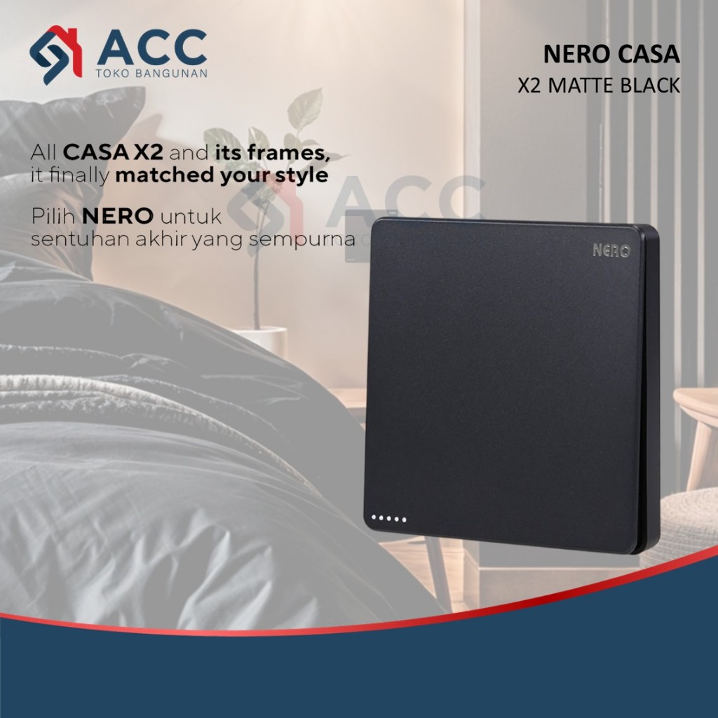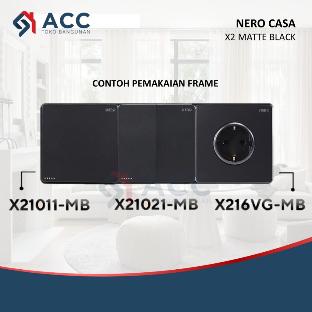 NERO CASA X2 MATTE BLACK SAKLAR STOP KONTAK FRAME WARNA HITAM DOFF