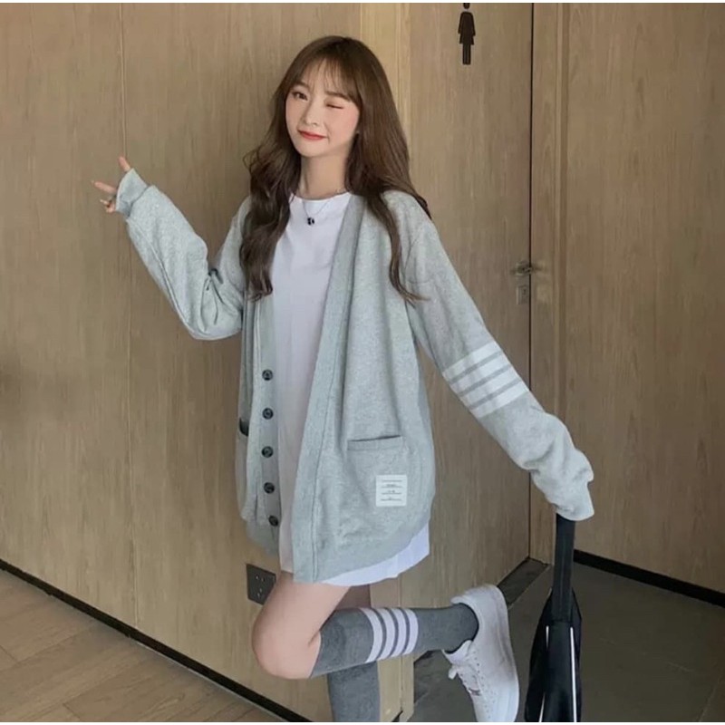 [𝗥𝗘𝗔𝗗𝗬]ETHEL COUTURE - Roanna Cardigan /Luaran Atasan Kardigan Wanita Sekolah Kuliah Viral Hitam Abu Muda