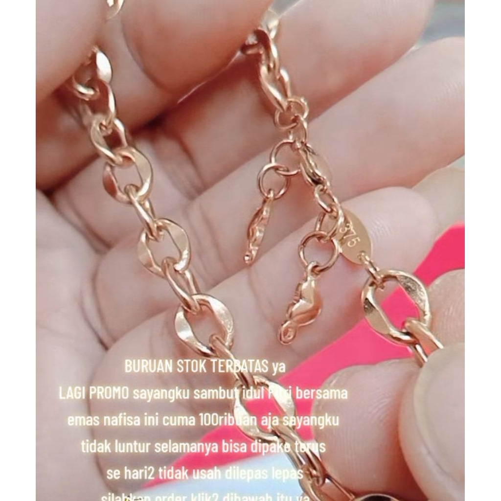 no.2_Gelang emas nafisa kode 375 +liontin love2 kisaran 8g spr mewah glowing elegan tidak luntur selamanya bisa dipake terus sehari2 termasuk mandi olahraga berenang dll,& aman disemua kulit anak dan dewasa TDK menimbulkan iritasi gatal2 dll
