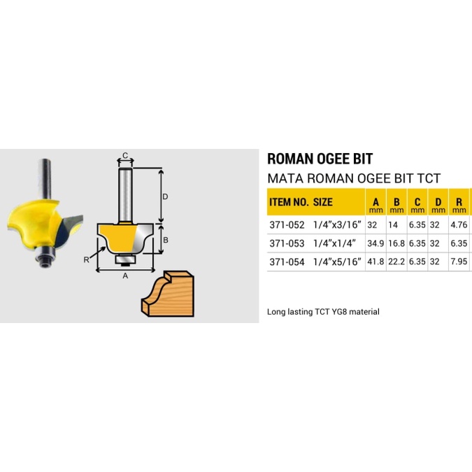 Jason MT Roman Ogee Bits TCT | Mata Profil | Mata Router Trimer kayu | Mata Router Profil | Mata Ruter