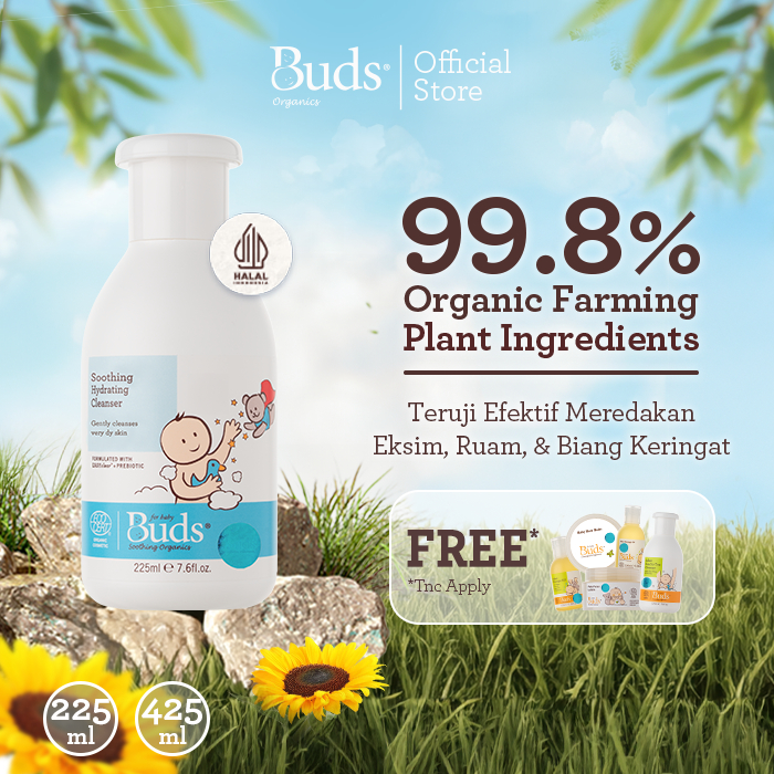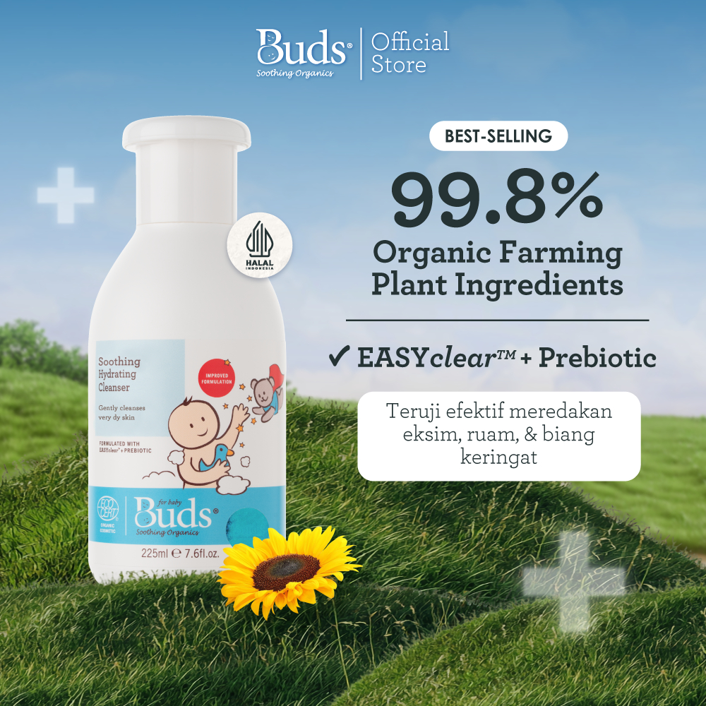 Buds Organics Super Soothing Hydrating Cleanser - Sabun Sampo Mandi Perawatan Iritasi Luka Eczema Bayi dan Anak