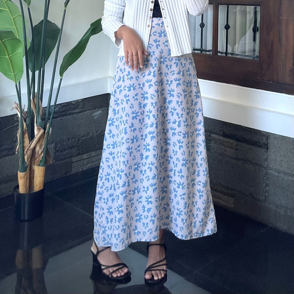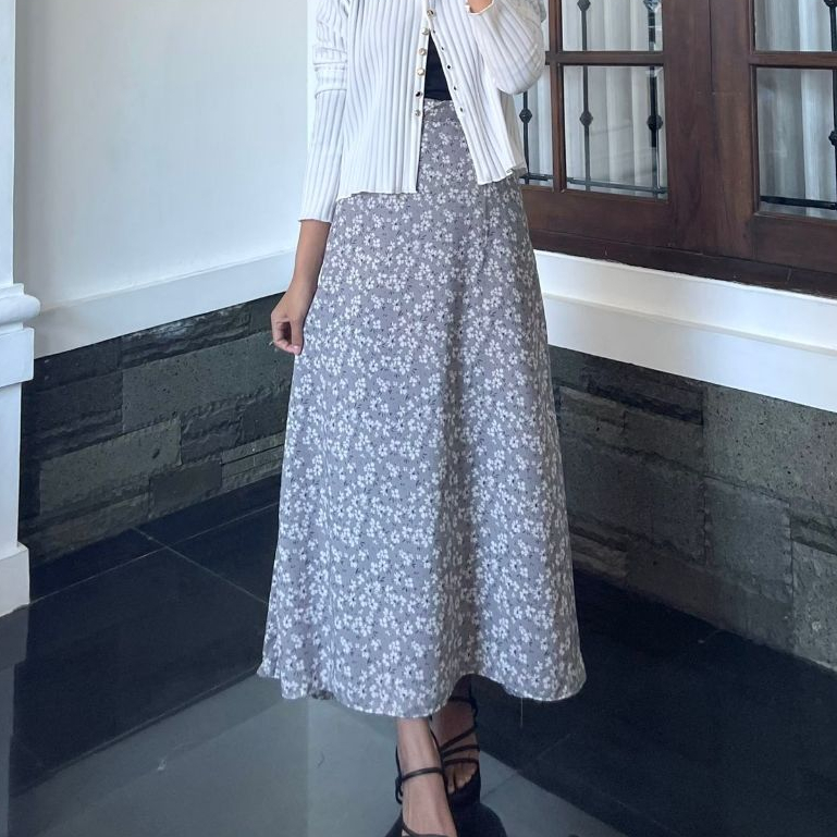 ROK A LINE FLORAL SKIRT / rok korean style / ROK WANITA FLORAL SKIRT MOTIF BUNGA