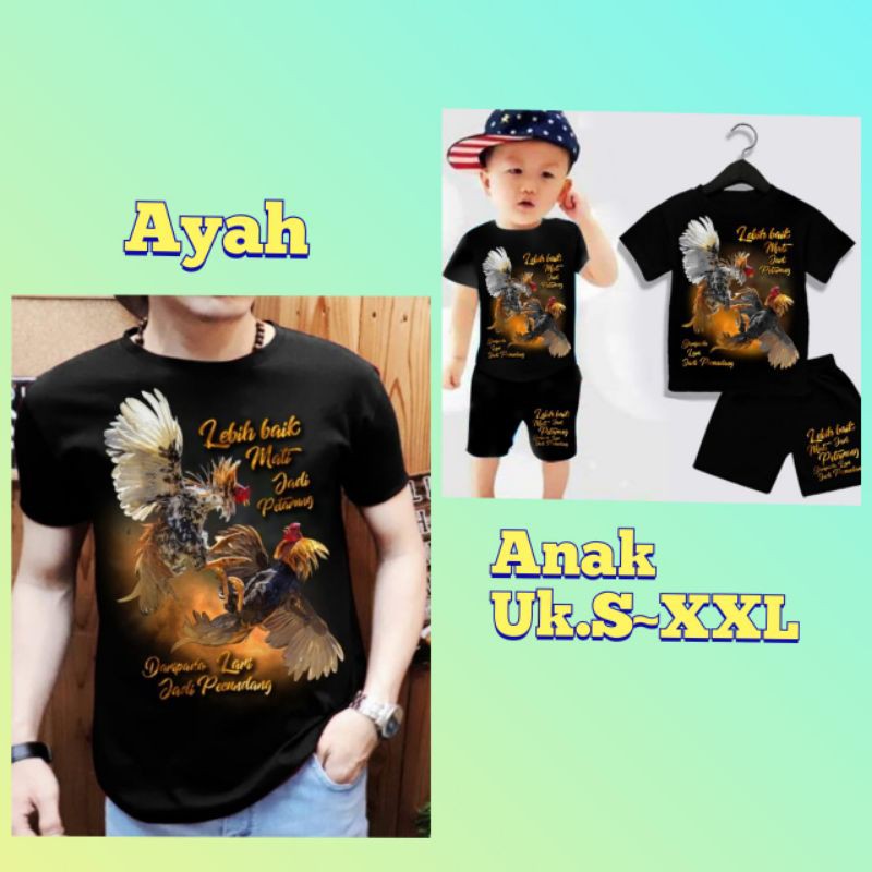 Kaos Couple Ayah & Anak keren terbaru gambar Ayam Emas