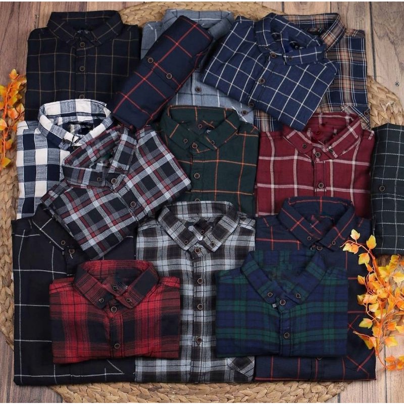 Kemeja Flanel Impor Pria Kualitas Premium Lengan Panjang Motif Kotak Kotak Unisex Hem Flannel Baju Flanel Pria Wanita