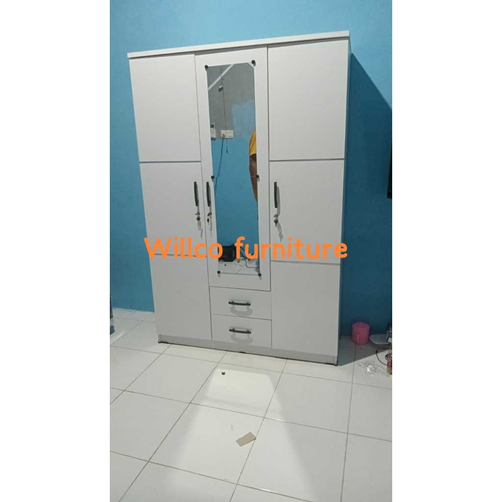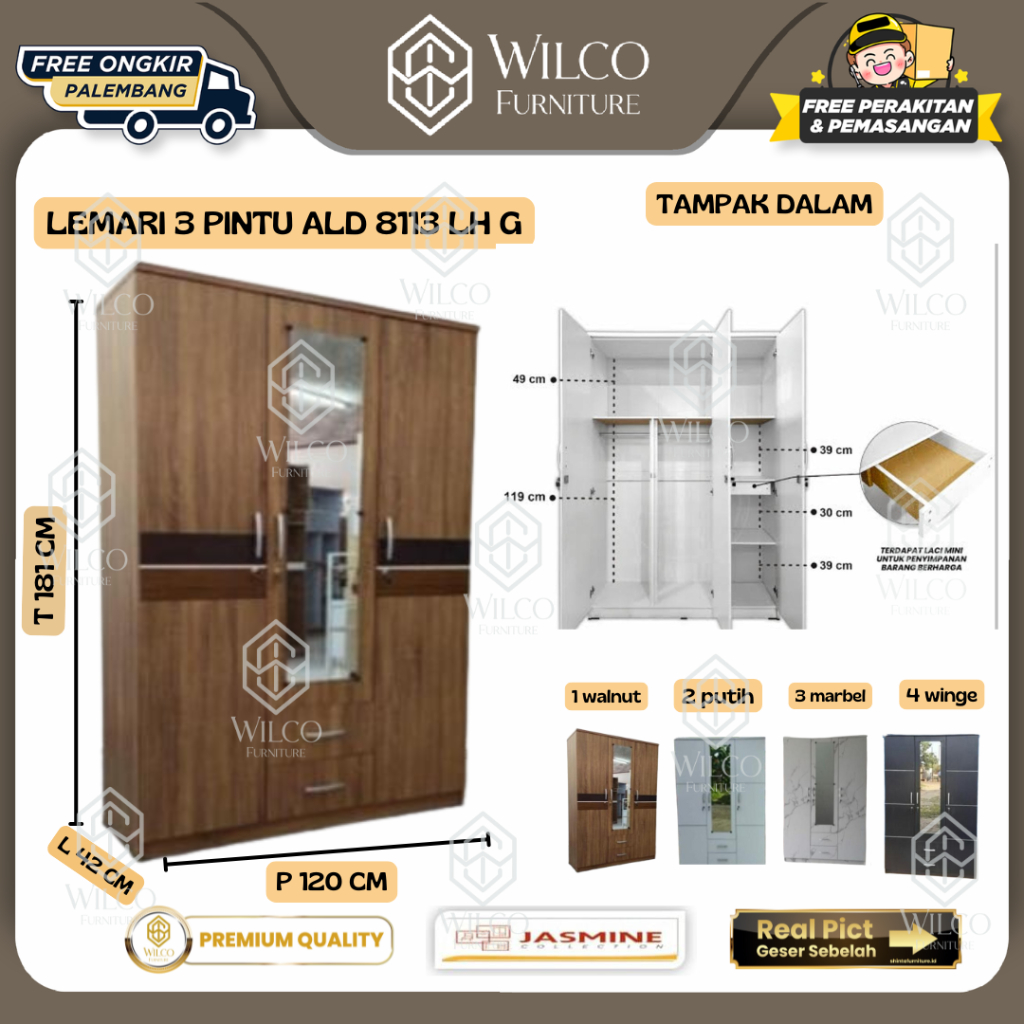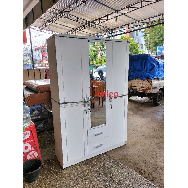 Lemari Pakaian 3 Pintu Jasmine Laci Rak / Lemari Baju Putih LLBP Jamine Murah Lemari Murah Palembang