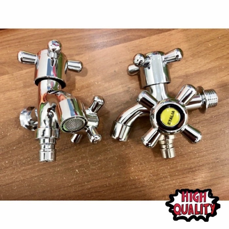 KRAN 2KEPALA NIKEL 1/2” cabang2 Keran air shower 2 kepala etalia Keran cabang 2 kepala Kran air cabang 2