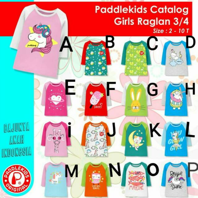 Paddlekids raglan cewek size 2-10 tahun kode i-p