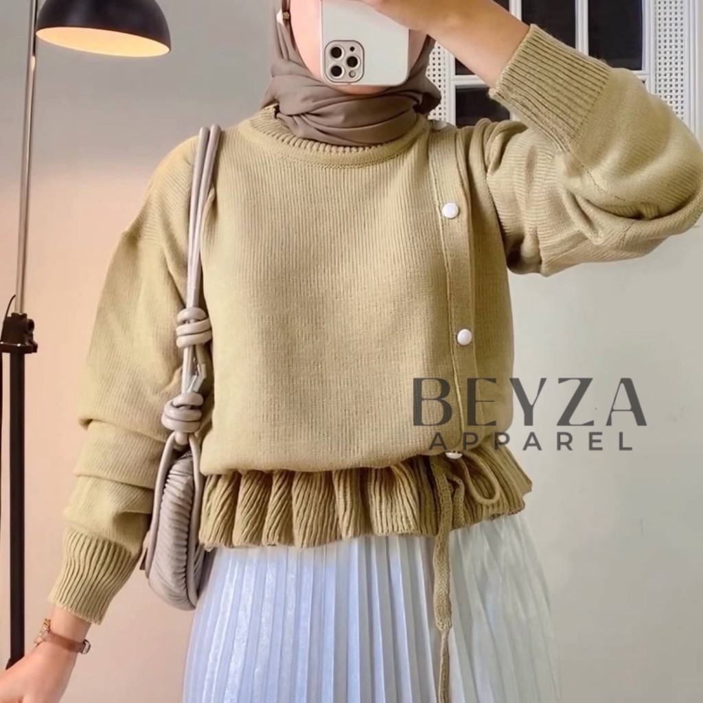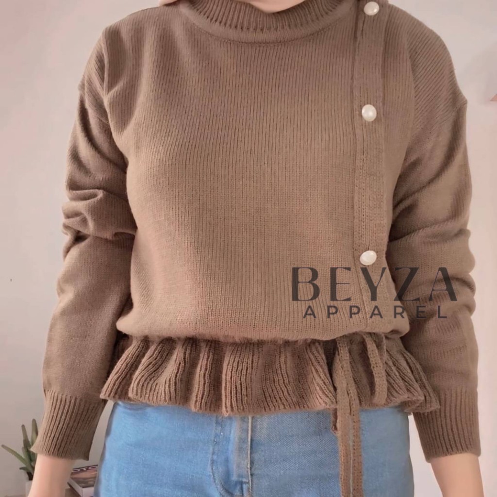 [Beyza Apparel] Jenny Blouse Atasan Rajut Korean Style Lengan Panjang Motif Polos