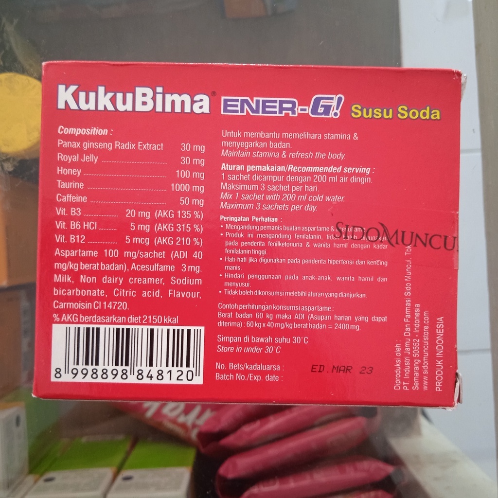 KUKUBIMA ENER-G Rasa Susu Soda 1pak isi 6 Sachet @4.5gr Suplemen Kesehatan Sidomuncul