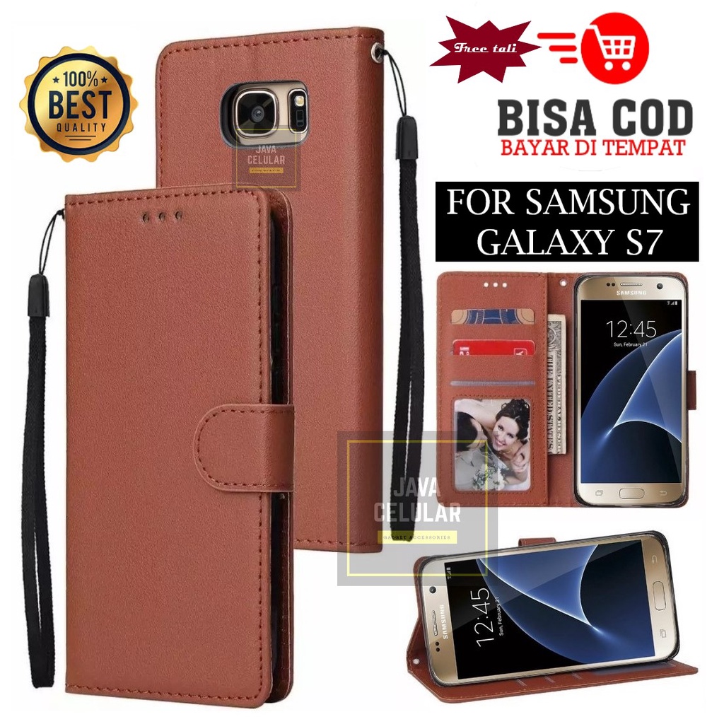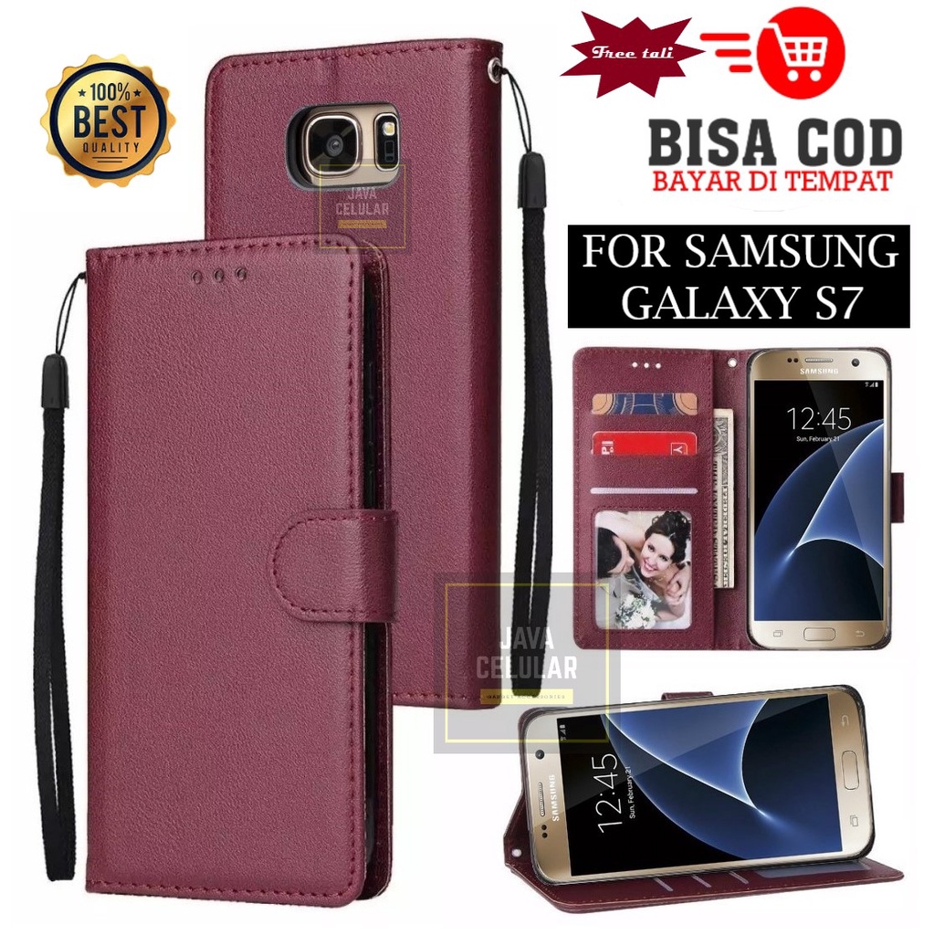 Flip Case Samsung Galaxy S7 - Flip Wallet Case Kulit - Casing Dompet Case Wallet Leather Flip Case Samsung Galaxy S7 Casing hp leather dompet kulit Flip Cover Wallet