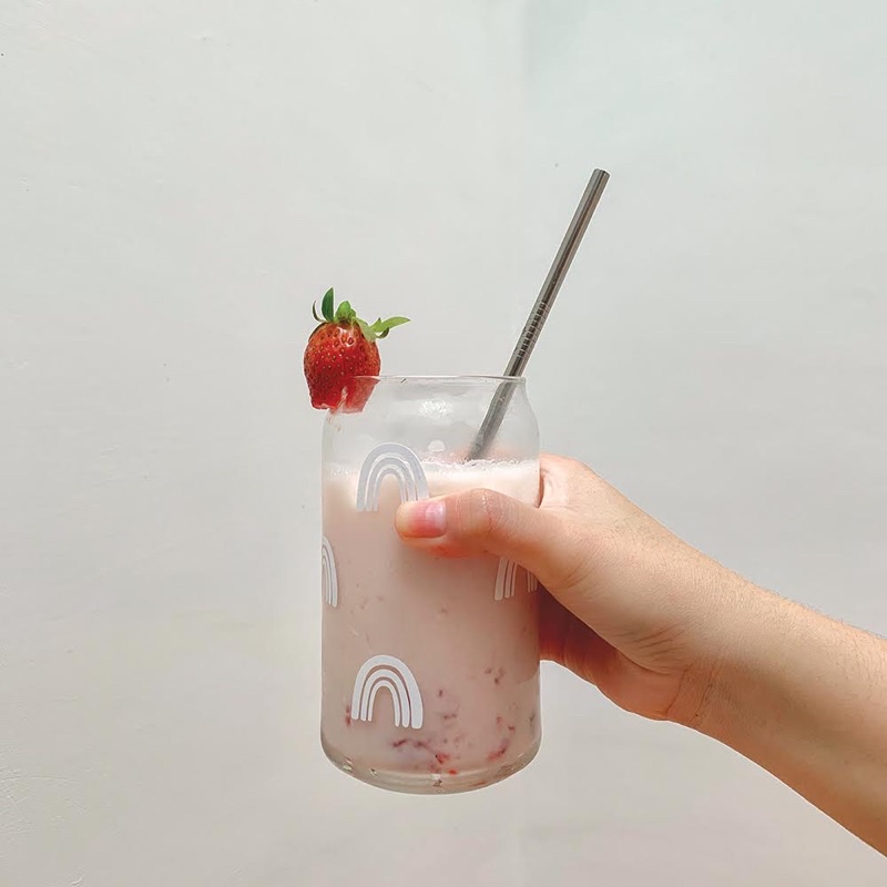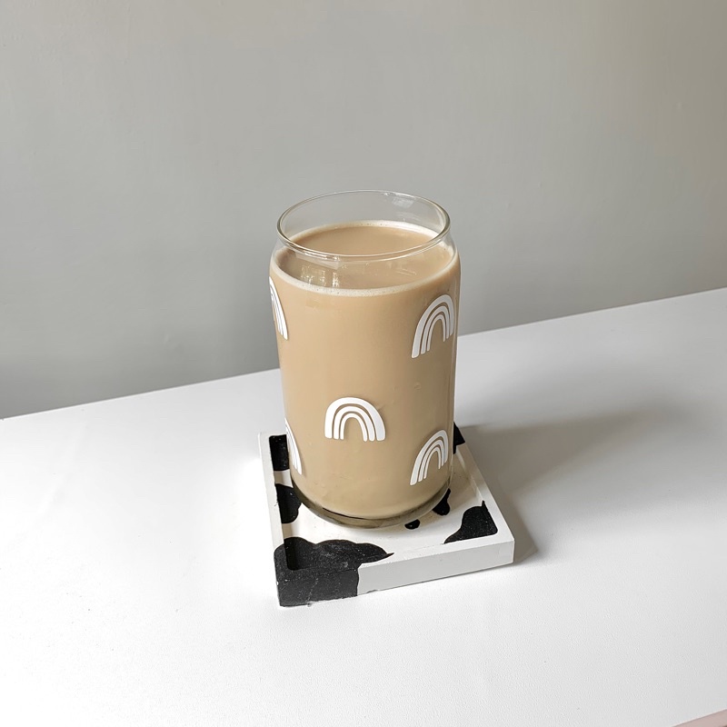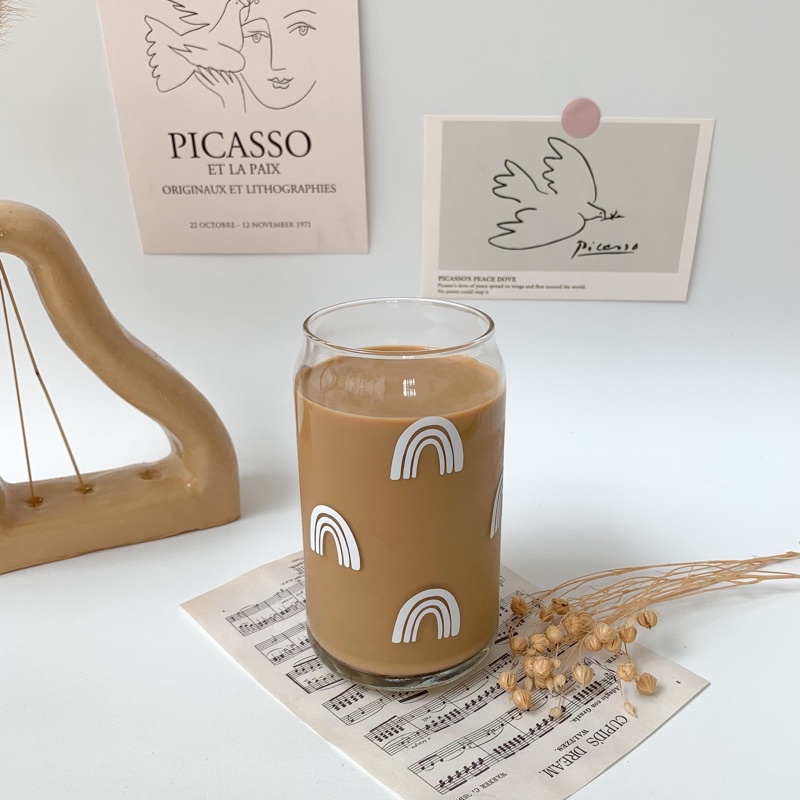 Beer Can Glass | Gelas Kaca Transparan | Gelas Aesthetic Murah | Gelas Motif Rainbow Putih