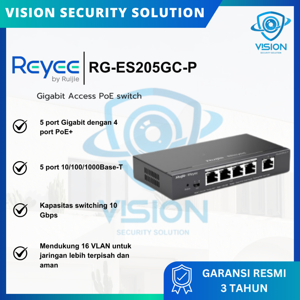 Ruijie Reyee RG-ES205GC-P Switch Poe Gigabit 5 Port & 4 Port PoE+ Support CCTV